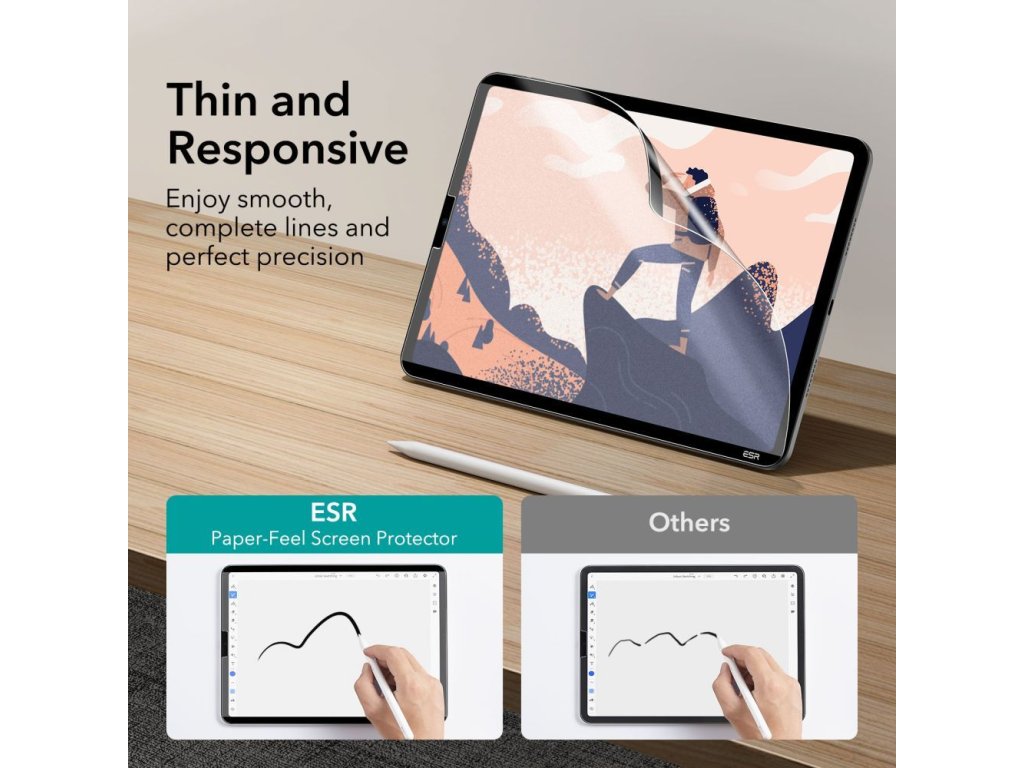 ESR Paper Feel Magnetic s matným povrchom napodobňuje textúru skutočného listu papiera. Toto príslušenstvo bude perfektnou voľbou pre tých, ktorí vytvárajú kresby, náčrty alebo poznámky na iPade. Zabraňuje tiež odtlačkom prstov a pôsobí ako antireflexná vrstva.