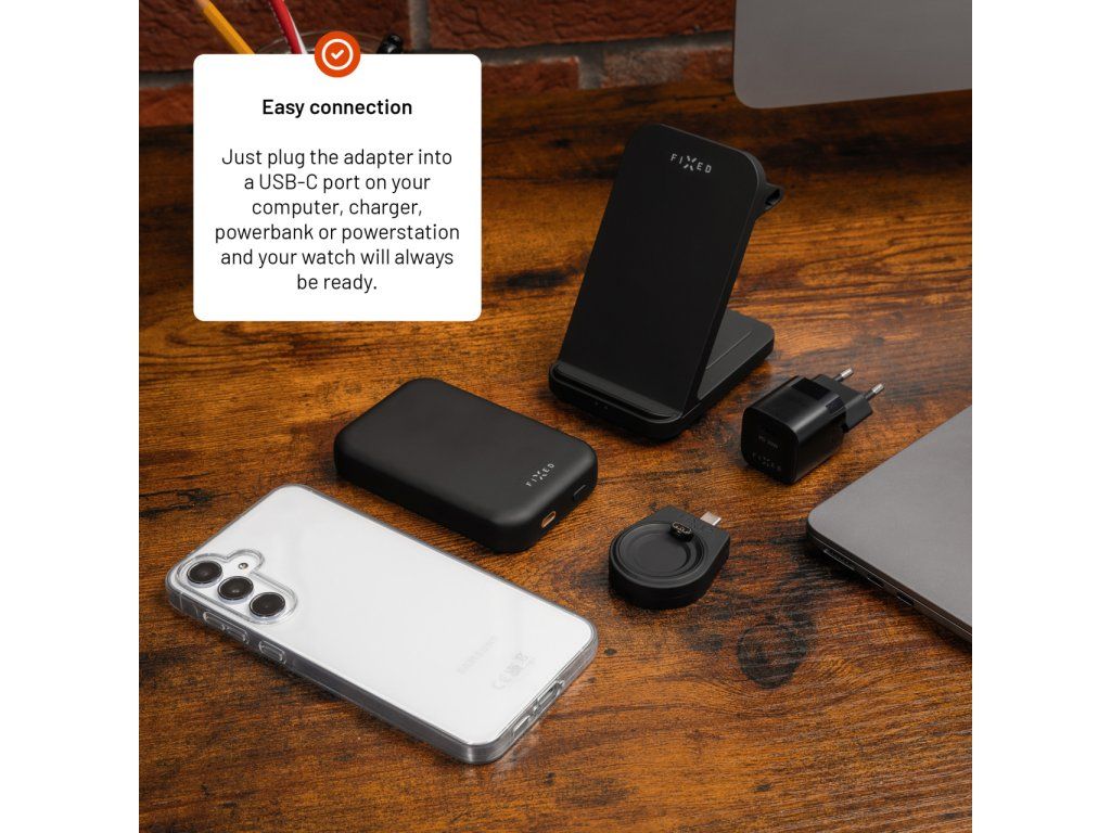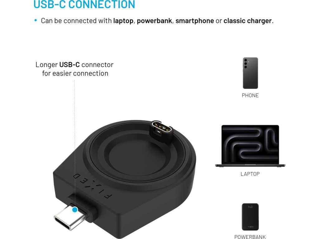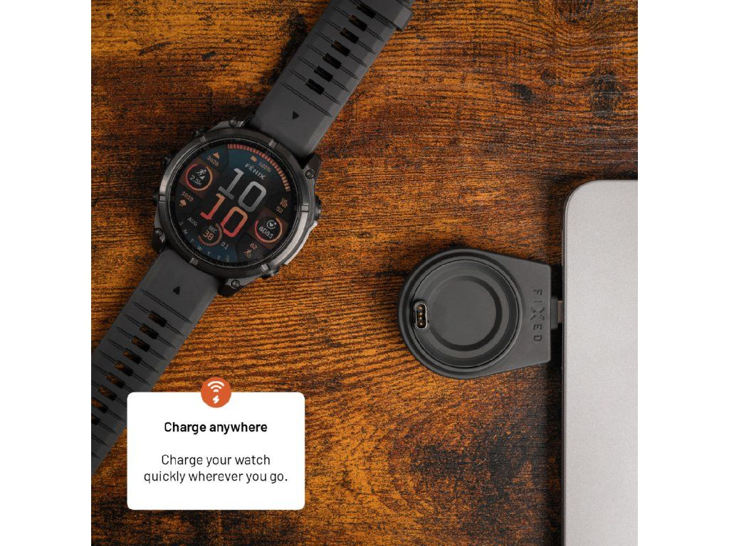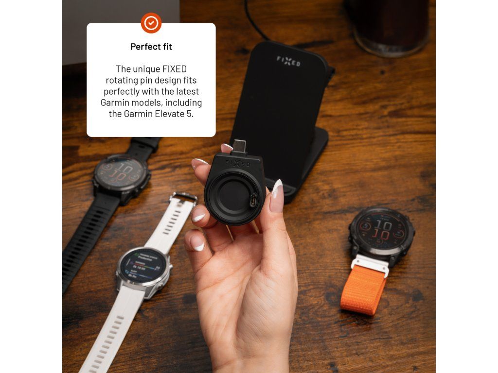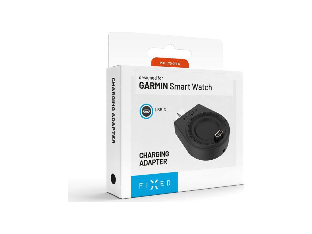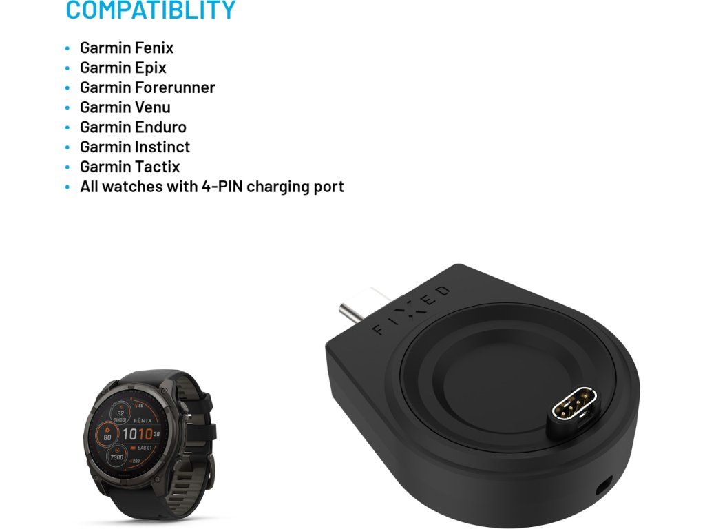 Nabíjací USB-C adaptér FIXED pre smartwatch Garmin Fenix 5/6/7/7X/8, Epix, Venu 2/3/3S, Vívoactive 3/4/5, čierny