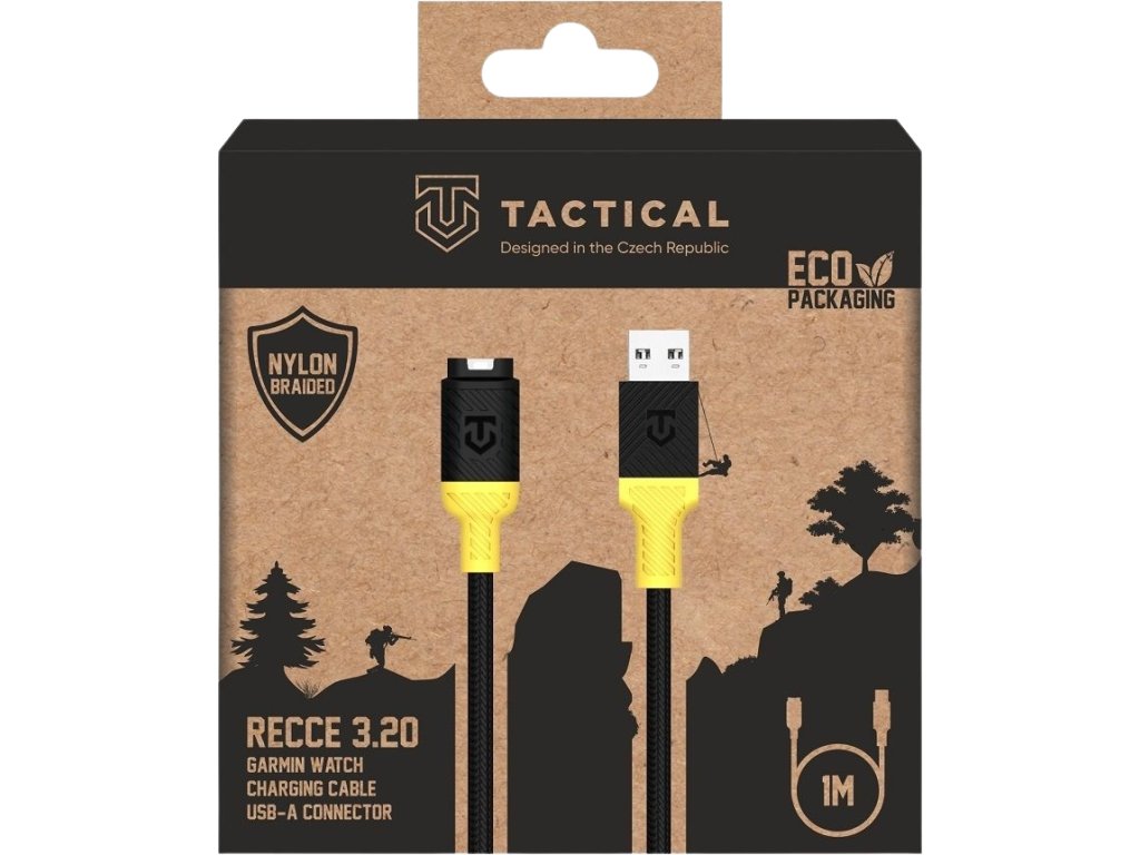 Originál z dielne Tactical. Vybav sa na expedíciu digitálnou džungľou s Tactical Recce 3:20. Nevyhnutný parťák na nabíjanie Garmin. ODOLNOSŤ PRIPOJENIA Navrhnutý rukopisom odolnosti v dielni Tactical. Vyrobený z robustných konektorov, zaisťujúcich bezpečné pripojenie a odolnosť pri každom použití. LANO 1 meter čierneho pleteného lana, ktoré odoláva najťažším podmienkam, od mestských džunglí až po divokú prírodu. SILIKÓNOVÉ PÚTKO Vyzbrojený silikónovým pútkom sa kábel Recce 3:20 stáva Tvojím ultimátnym bojovým doplnkom. Kábel zmotáš, uzamkneš silikónovým pútkom, hodíš do batohu a pokračuješ ďalej. NEODOLATEĽNE ODOLNÝ Tento kúsok nie je len pre parádu. U nás v Tactical dbáme na to, aby veci niečo vydržali. Tactical Recce 3:20 bol podrobený tvrdým podmienkam a pri výrobe sme použili veľmi odolné materiály a aplikovali najnovšie technológie pre čo najlepší výstup. Je to kábel, na ktorý sa môžeš spoľahnúť aj v tých najextrémnejších podmienkach. BE ECO My v Tactical máme radi prírodu. Všetky naše produkty sú balené do ECO škatuliek z recyklovaného papiera tak, aby čo najmenej zaťažovali životné prostredie. Mysli takticky!
