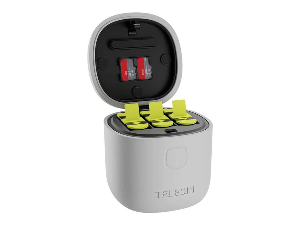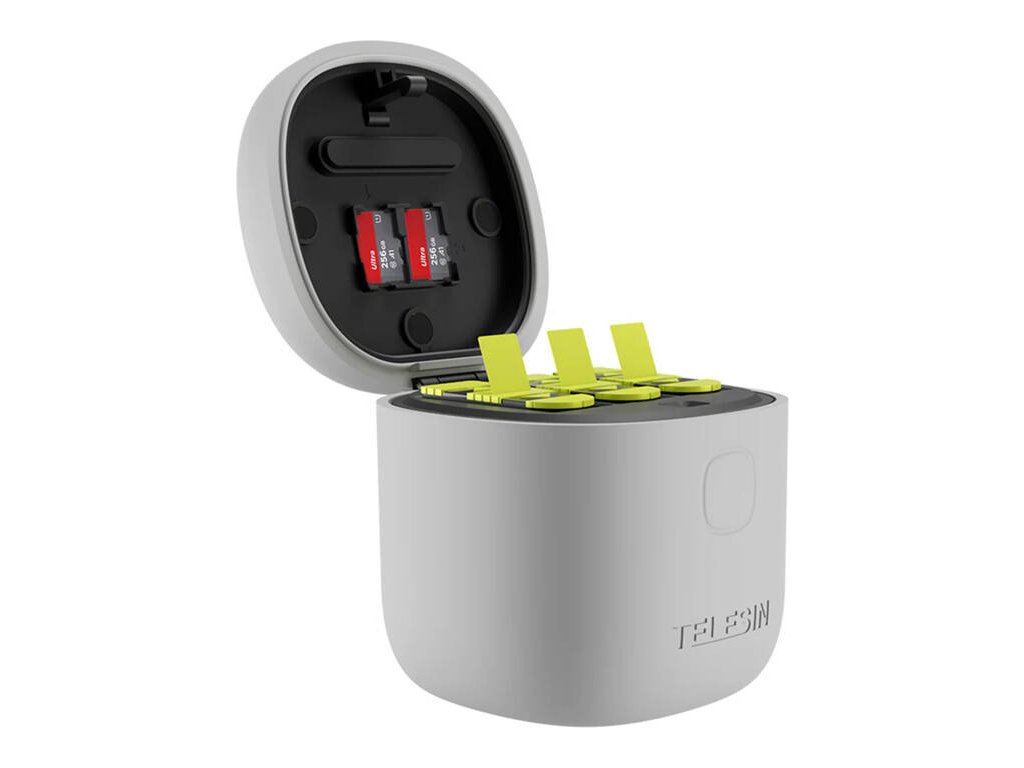 Špeciálne navrhnutý pre kamery GoPro Hero 9, 10, 11 a 12, TELESIN Allin Box kombinuje funkcie nabíjania, ukladania a čítania pamäťových kariet. Dodáva sa s tromi vysokokapacitnými dobíjacími batériami, ktoré ponúkajú dlhšiu výdrž batérie v porovnaní s originálnymi batériami a poskytujú vašej kamere neobmedzený výkon!
