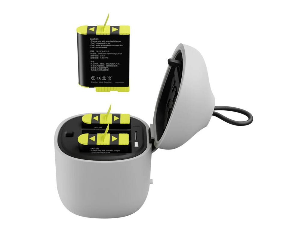 Nabíjačka a 2 batérie pre GoPro Hero 9 / Hero 10 Telesin GP-BTR-905-GY Táto praktická sada od spoločnosti Telesin vám výrazne uľahčí používanie vašich kamier GoPro Hero 9 a Hero 10.