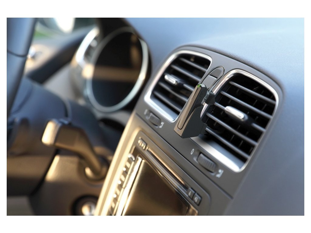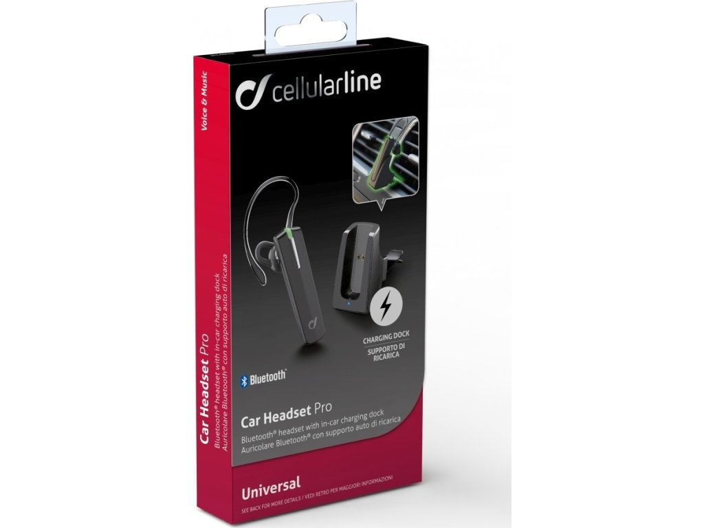 CellularLine Bluetooth Car Pro je headset, ktorý môžete zavesiť do mriežky ventilátora vášho automobilu. Má multifunkčné tlačidlo na prijímanie hovorov a je vybavený dokom na nabíjanie. Car Pro zaisťuje čistý zvuk a telefonovanie s voľnými rukami. Má lesklý čierny povrch a elegantný dizajn