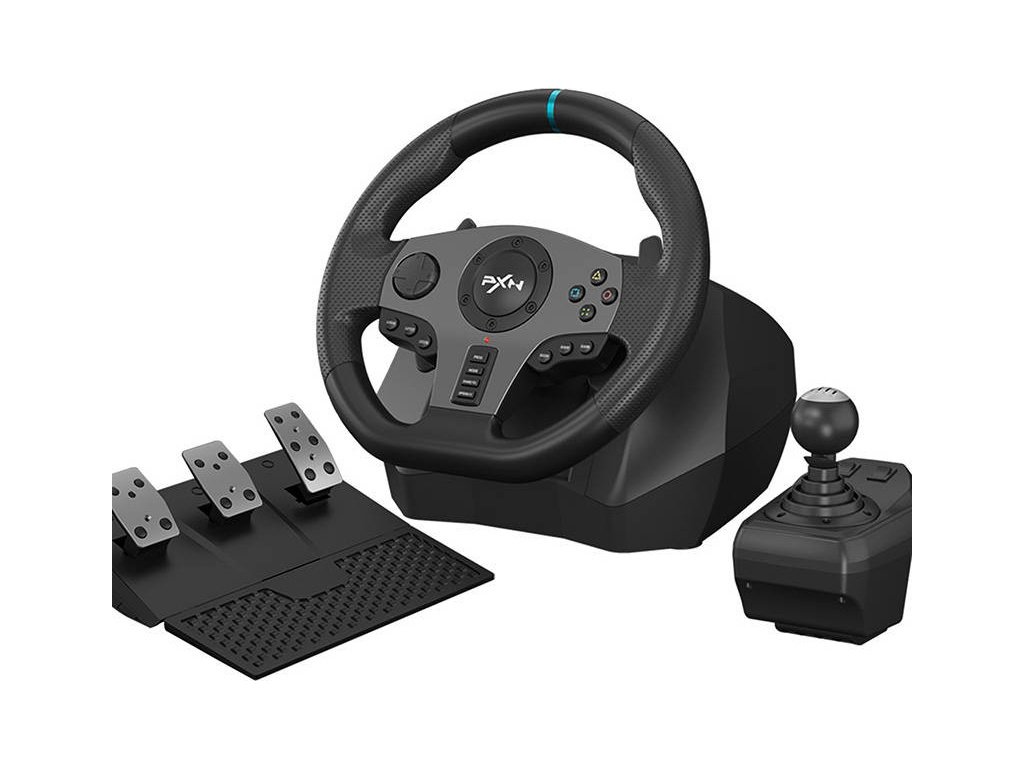 Ste fanúšikom závodných hier a chcete sa cítiť ako na skutočnej trati? Volant PXN-V9 ponúka vysokú realistickosť, prispôsobiteľné parametre a širokú kompatibilitu. Jeho súčasťou sú aj pedále a prevodovka, takže sa môžete vžiť do role závodného jazdca. Volant ponúka 8 programovateľných tlačidiel a port Mini Jack 3,5 mm.