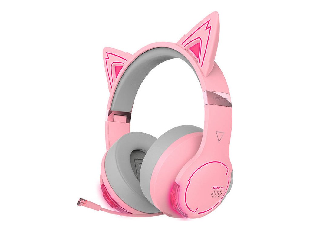 Slúchadlá G5BT sú dokonalou kombináciou funkčnosti a štýlu. Dodávajú sa so silikónovými mačacími ušami príjemnými na dotyk, ktoré je možné vďaka zabudovaným magnetom ľahko nasadiť alebo zložiť. Za zmienku stojí aj dynamické podsvietenie RGB, ktoré si môžete nastaviť podľa svojich predstáv a vybrať si z 8 dostupných režimov. Stále svetlo, pulzujúce, alebo napríklad viacfarebný gradient? Podsvietenie sa navyše automaticky zapne, keď k slúchadlám pripojíte mačacie uši.