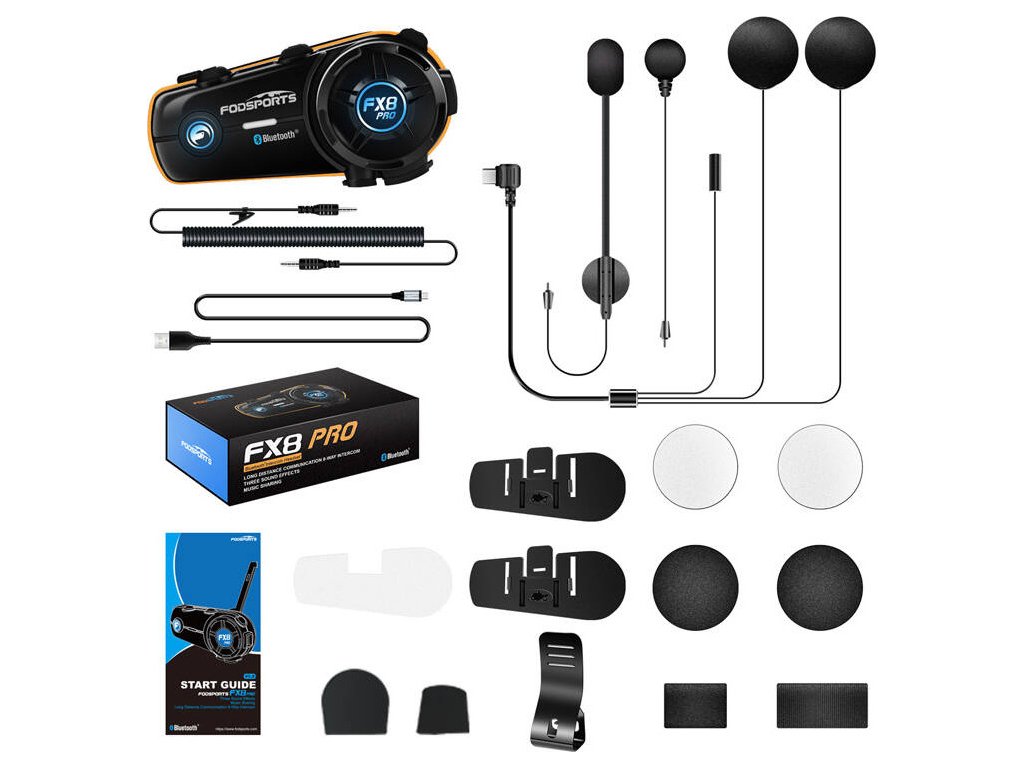 Fodsports FX8 Pro je najmodernejší interkom, ktorý kombinuje inovatívne technológie a robustnú konštrukciu, dokonale prispôsobenú potrebám motocyklistov. Poskytuje dosah až 2000 metrov a umožňuje pripojenie až 10 interkomov súčasne. Je vybavený duálnym čipom Bluetooth 5.0 a vysoko kvalitnými reproduktormi, takže zaručuje plynulú komunikáciu a vysokú kvalitu zvuku aj v náročných podmienkach. FX8 Pro môžete namontovať na takmer akýkoľvek typ prilby - plnú aj otvorenú.