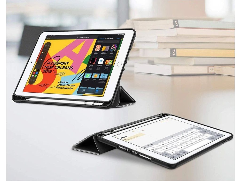 Vďaka použitiu plisovaného krytu na prednej strane krytu získame ochranu displeja a vďaka technológii budenia a spánku zariadenie môžeme zaistiť o niečo dlhšiu výdrž batérie. Puzdro je možné využiť aj ako stojan pre pohodlnejšie používanie prístroja.