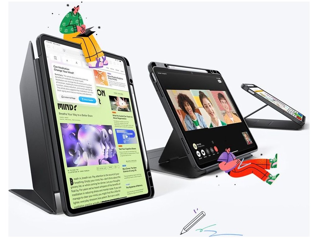 Jednou z najväčších výhod puzdra ESR Flip Case je jeho univerzálnosť – puzdro ľahko premeníte na stojan s nastaviteľným uhlom sklonu, ideálny na písanie, sledovanie filmov, videokonferencie alebo kreslenie. Vstavaný držiak Apple Pencil nielenže uloží vašu Apple Pencil, ale taktiež podporuje magnetické nabíjanie, takže váš stylus je vždy pripravený na akciu.