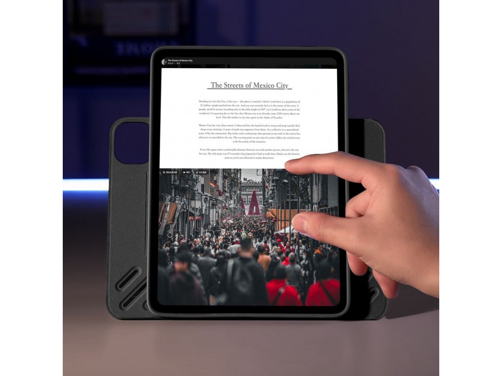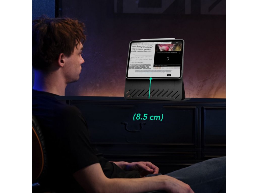 Zvýšený pohľad na obrazovku je ďalšou výhodou tohto puzdra. Špeciálne navrhnutá umožňuje zdvihnúť zariadenie do zorného poľa. Toto riešenie výrazne zlepšuje komfort používania a pomáha udržiavať pohodlnú polohu, čo umožňuje sedieť vzpriamene aj pri dlhodobom používaní zariadenia.