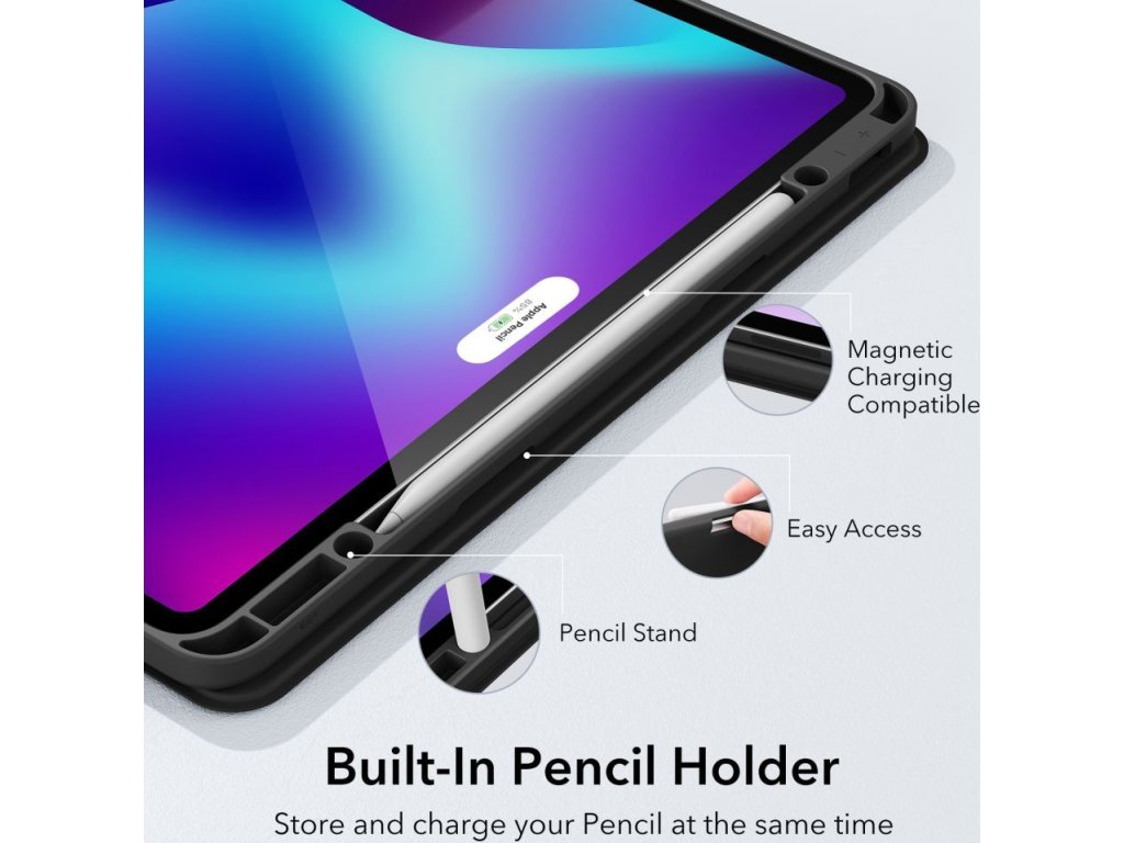 - integrovaný držiak poskytuje bezpečné miesto na uloženie a nabíjanie Apple Pencil (2. generácia)