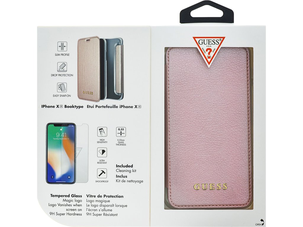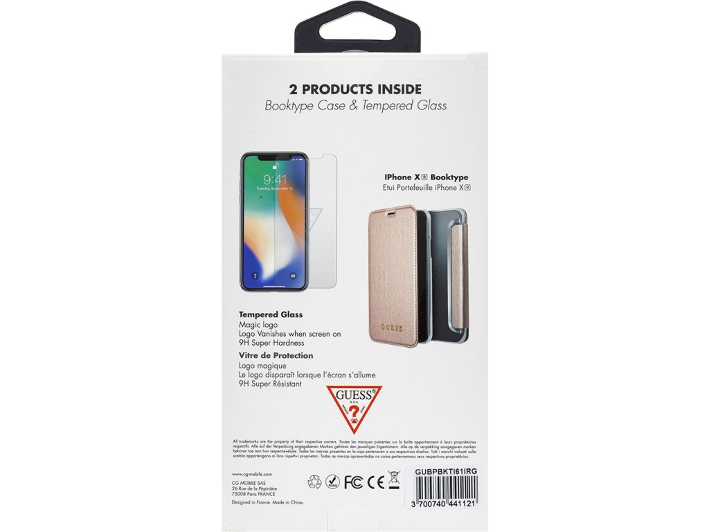 GUBPBKTI61IRG Guess Bundle Leather Book Case Iridescent Rose Gold + Tempered Glass pre iPhone XR