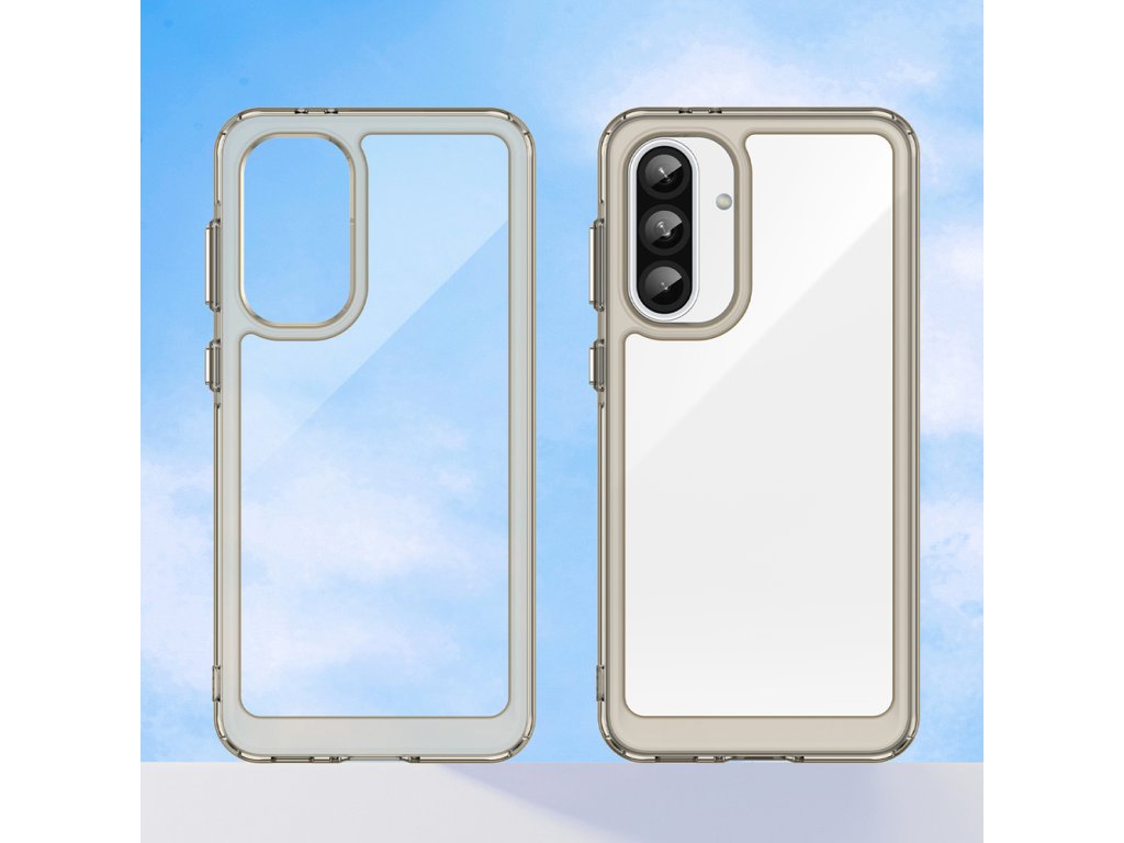 Doprajte svojmu smartfónu maximálnu ochranu a štýl s Puzdro Outer Space . Toto hybridné puzdro kombinuje výnimočnú odolnosť s moderným dizajnom. Vyrobené z flexibilného rámu z TPU a pevného zadného krytu z PC účinne chráni telefón pred pádmi, nárazmi a poškriabaním. Vďaka vyvýšeným okrajom navyše chráni obrazovku a fotoaparát. Jeho priehľadný dizajn vám umožní vychutnať si originálny vzhľad Samsungu Galaxy A56 a presné výrezy poskytujú plný prístup k portom a tlačidlám. Je to vynikajúca voľba pre tých, ktorí si cenia funkčnosť a estetiku v jednom!