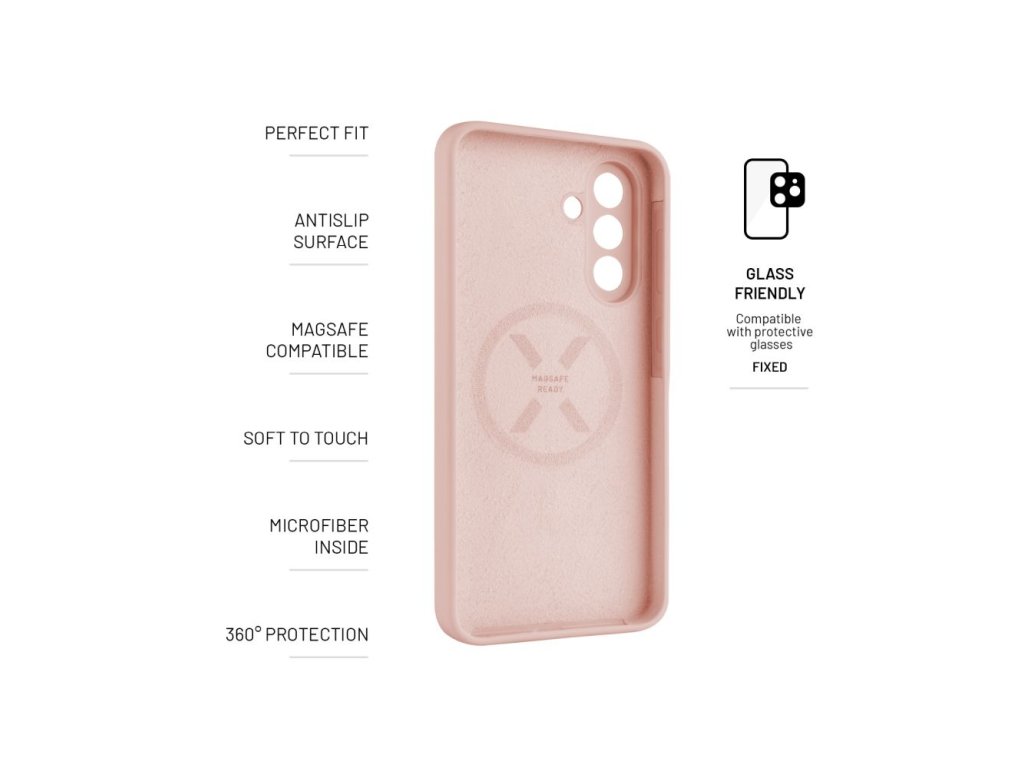 FIXED MagFlow s podporou funkcie MagSafe predstavuje tvrdený farebný kryt, ktorý spoľahlivo udrží váš mobilný telefón v bezpečí, a navyše skvele vyzerá. Jeho povrch tvorí tzv. Liquid silicon - ľahký a napriek tomu odolný materiál, ktorý je oproti klasickým silikónovým krytom hebký na dotyk, nekĺže a príjemne sa drží v ruke. Na vnútornej strane chráni vložený telefón výstelka z mikrovlákna. Vďaka integrovaným magnetom kryt dokonale priľne k telefónu a perfektne spolupracuje so všetkým MagSafe príslušenstvom. Bezdrôtové nabíjanie tak bude jednoduchšie a efektívnejšie ako kedykoľvek predtým, stačí pricvaknúť MagSafe nabíjačku priamo ku krytu. Telo krytu FIXED MagFlow je vystužené tvrdenou škrupinou a môže sa tak pochváliť vysokou odolnosťou pred rôznymi pádmi a nárazmi. Ľahko presahujúce okraje krytu chráni displej telefónu aj šošovku fotoaparátu pred poškriabaním napríklad pri položení na stôl. FIXED MagFlow je navrhnutý presne na mieru danému modelu telefónu, dokonale sedí a myslí aj na krytky ovládacích tlačidiel a presné výrezy pre reproduktory, nabíjací konektor aj fotoaparát.