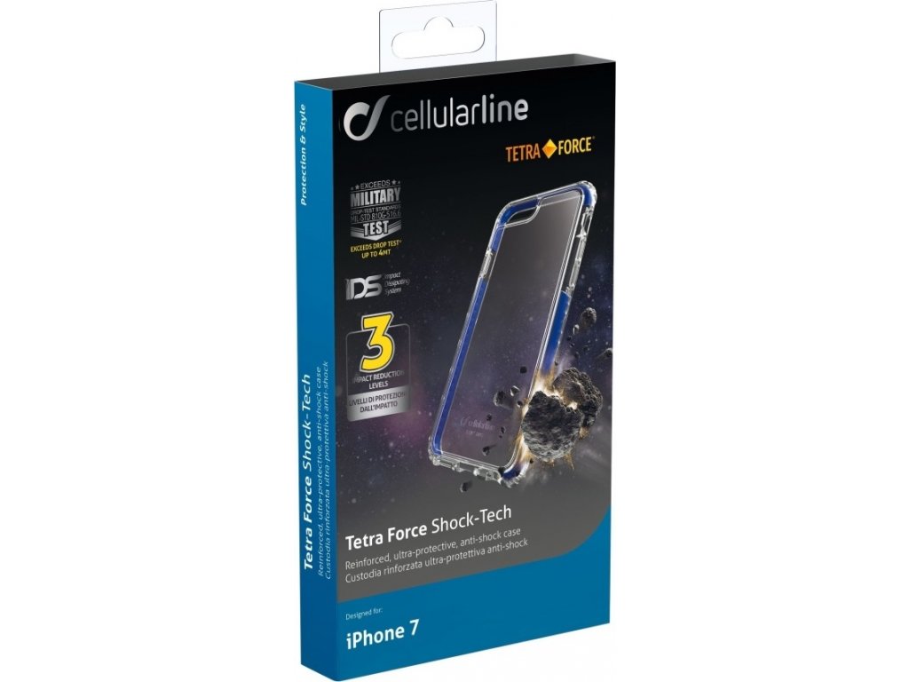 Extra odolné puzdro Tetra Force Shock-Tech predstavuje maximálnu ochranu pre Váš telefón. Predstavuje tretí a najvyšší stupeň ochrany vyvinutej firmou Cellularline. Nová technológia IDS (Impact Dissipating System) dokáže pri páde rozložiť silu nárazu a úplne ju pohltiť. Telefón tak nie je vystavený všetkej sile nárazu len v jednom mieste, ako je bežné u iných puzdier. Zadná tvrdená časť puzdra vyrobená z polykarbonátu je navyše krytá TPU a Versaflexom, napriek tomu zostáva plne transparentná a dáva tak vyniknúť dizajnu telefónu. Zosilnené rohy puzdra chránia najviac exponované miesta pri páde a zvýšené okraje na prednej strane zamedzia poškriabaniu displeja. Vnútorná vrstva vďaka svojmu dizajnu vytvára medzi puzdrom a telefónom malé vzduchové komory, ktoré redukujú všetky prípadné otrasy pri pádoch a chránia tak vnútorný citlivý hardvér časti telefónu. Všetky puzdrá Tetra Force Pro sú testované v špeciálnom Military teste a vydržia pád z výšky až 4 metrov. Na puzdrá Tetra Force Shock-Tech poskytuje výrobca doživotnú záruku.