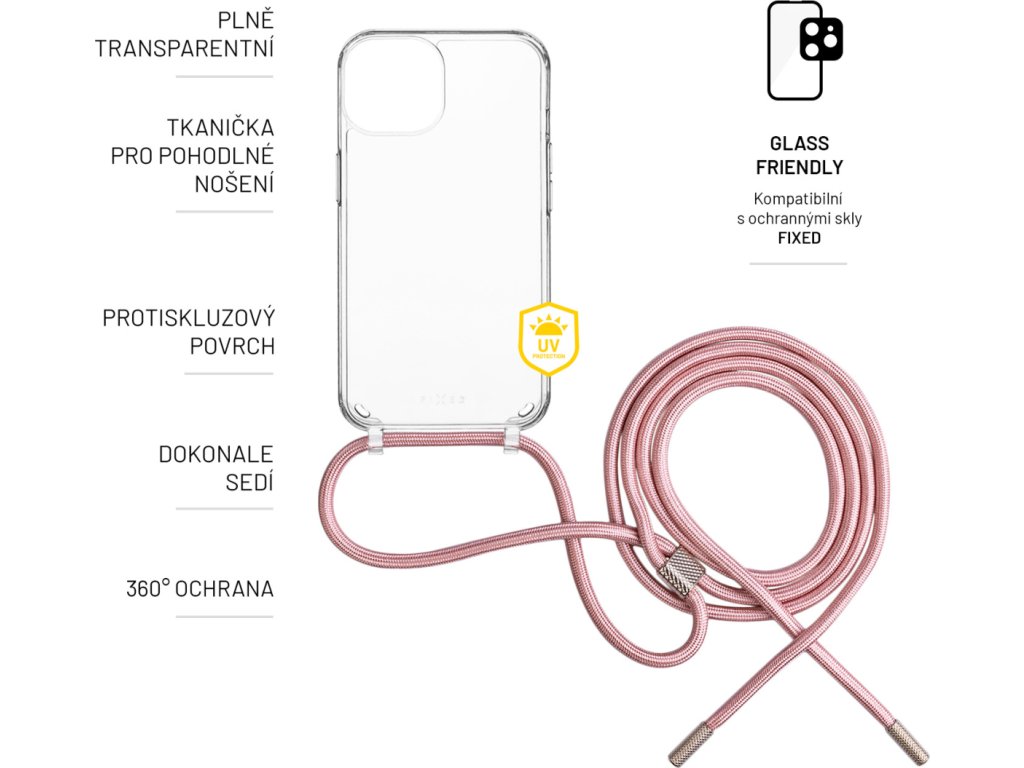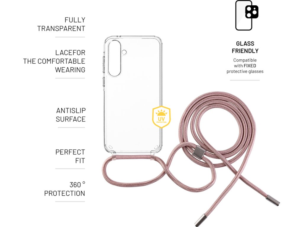 Puzdro FIXED Pure Neck s ružovou šnúrkou na krk pre Samsung Galaxy A35 5G