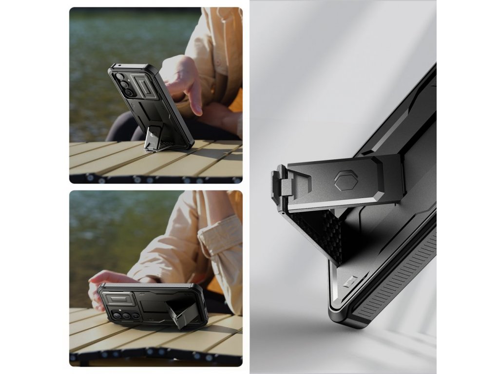 Dvojdielne puzdro kombinuje pevný zadný pancier vyrobený z PC škrupiny a nárazuvzdorného TPU. Dodatočná výstuha v rohoch - ochranné airbagy - účinne absorbujú akýkoľvek pád. Prednú stranu zariadenia obklopuje rám s integrovaným polykarbonátovým krytom. Toto riešenie dokonale oddeľuje displej a chráni ho proti poškriabaniu.