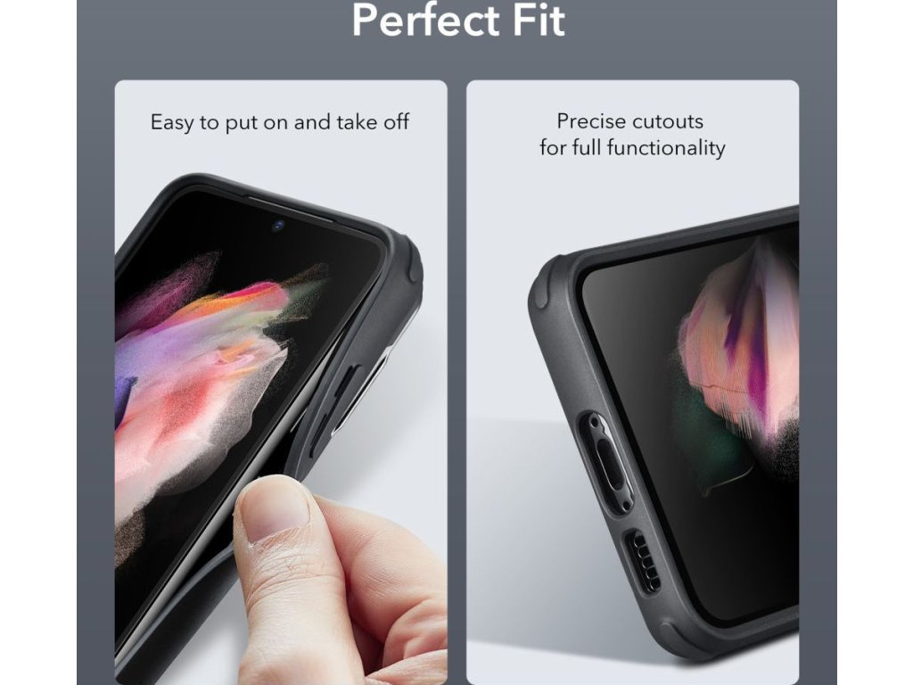 Puzdro je kombináciou pevného a tvrdýho chrbta z PC a akrylu a mäkkého TPU rámu vystuženého v rohoch.