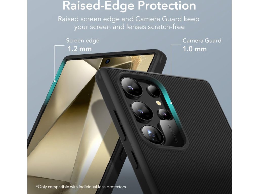 Puzdro vďaka okrajom oddeľuje displej aj fotoaparát telefónu od rovných povrchov a zabraňuje poškriabaniu týchto kritických častí zariadenia.