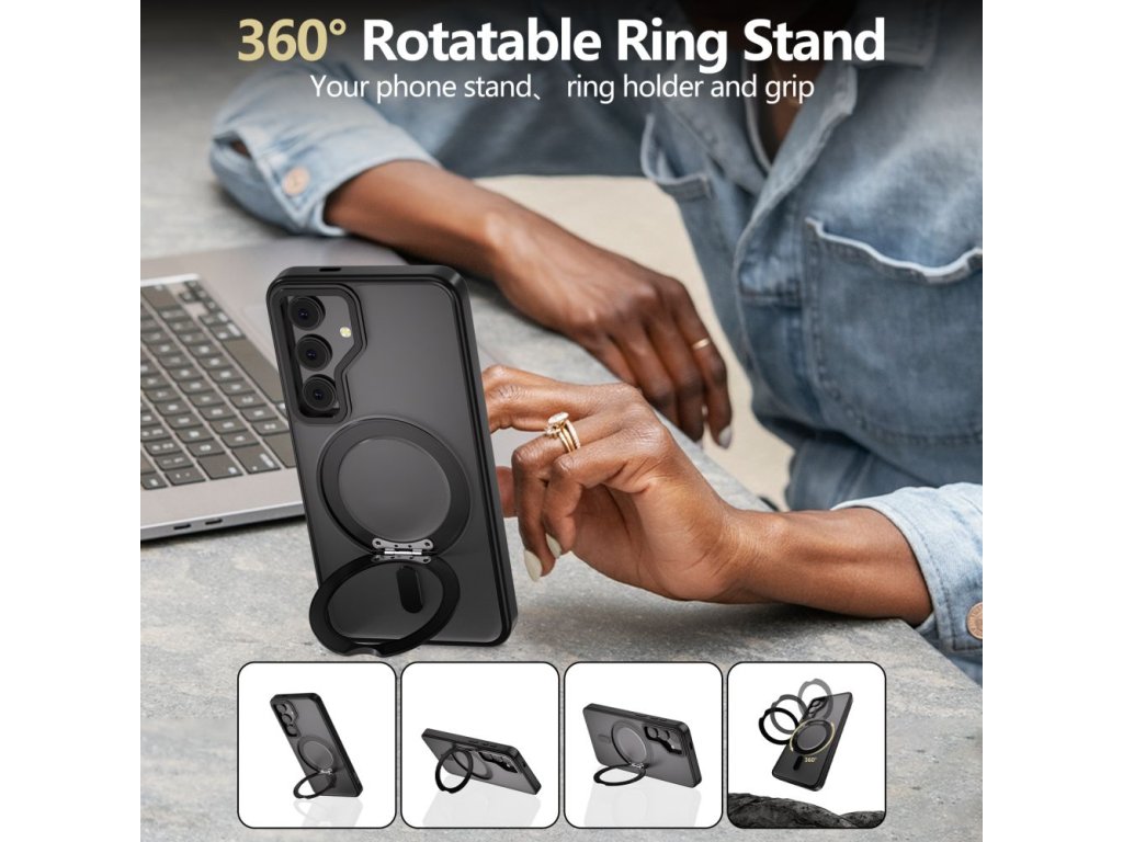 Kľúčovým prvkom puzdra je pohyblivý prsteň, ktorý sa dá otáčať o 360 stupňov, čo umožňuje jeho použitie rôznymi spôsobmi - ako stojan pre pohodlné sledovanie filmov, ako držiak na prst pre bezpečnejšie držanie telefónu a ako prvok podporujúci funkciu MagSafe. Vďaka vlastnostiam MagSafe perfektne spolupracuje s príslušenstvom MagSafe, ako sú nabíjačky alebo magnetické držiaky.
