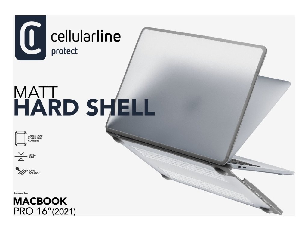 Tvrzený ochranný kryt Cellularline Matt Hard Shell pro Apple MacBook PRO 16'' (2021), transparentní