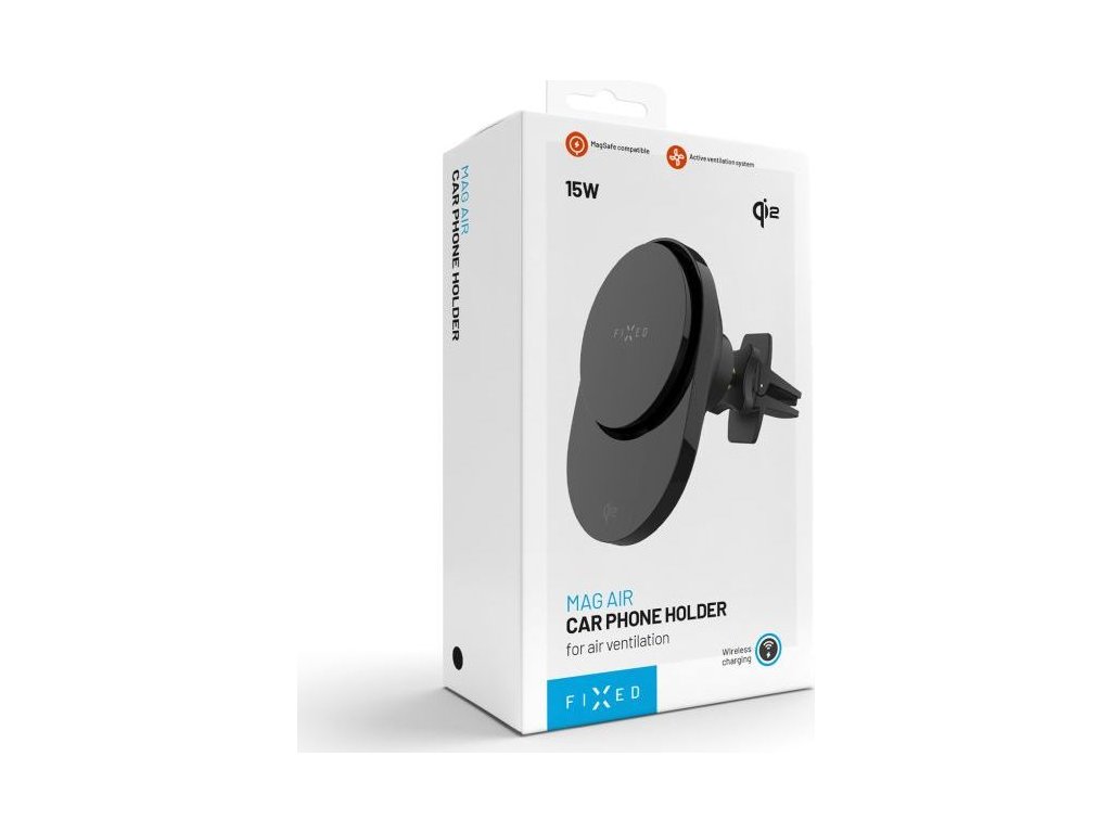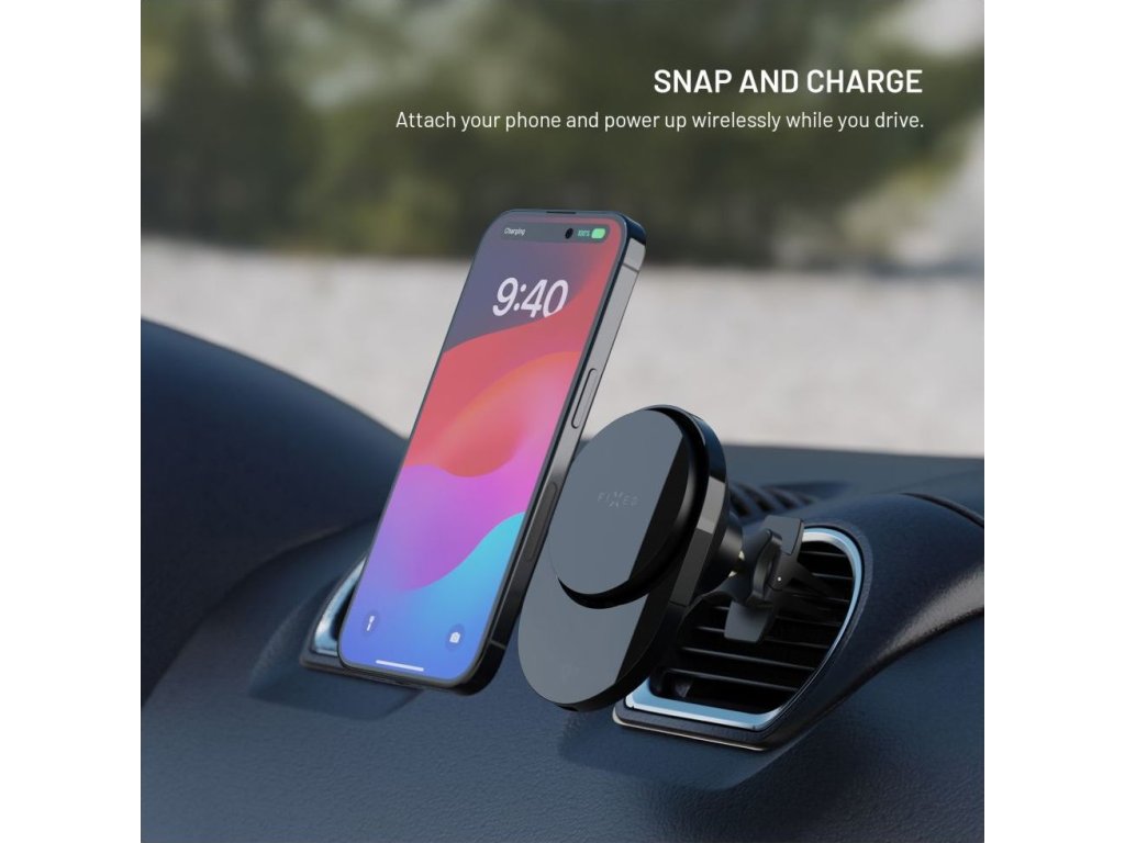 Držiak do auta s bezdrôtovým nabíjaním FIXED MagAir s podporou uchytenia MagSafe a štandardom Qi2, 15W, čierny