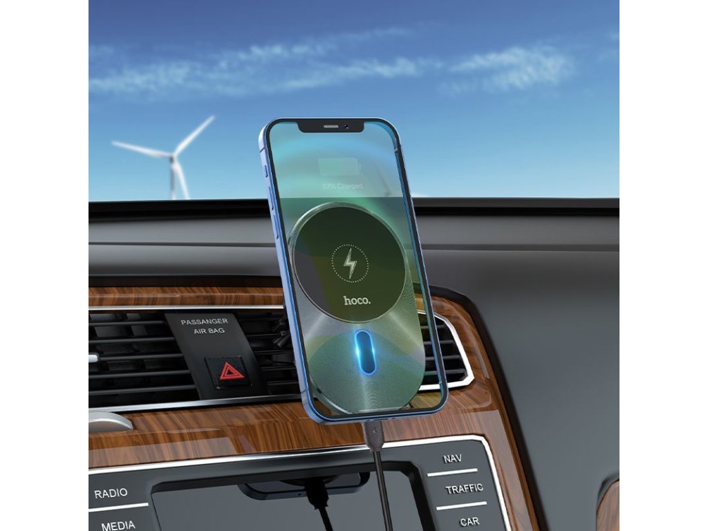 Hoco CA91 je magnetický držiak do vetrania auta, vybavený schopnosťou nabíjať zariadenia Apple technológiou MagSafe s maximálnym výkonom 15W. Tento držiak je teda vhodný pre telefóny iPhone radu 12 a 13.
