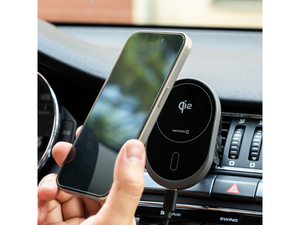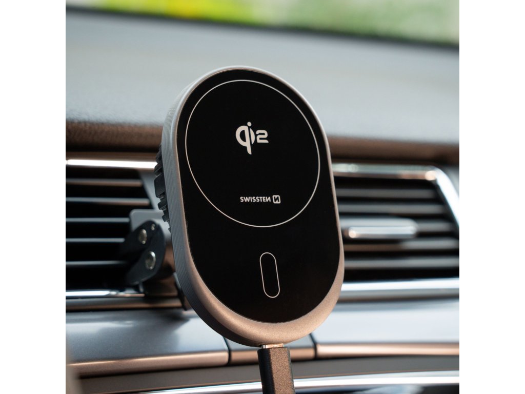 MAGNETICKÝ DRŽIAK DO VENTILÁCIE AUTA SWISSTEN MagRide S BEZDRÔTOVÝM NABÍJANÍM Qi2 15W (kompatibilný s MagSafe)