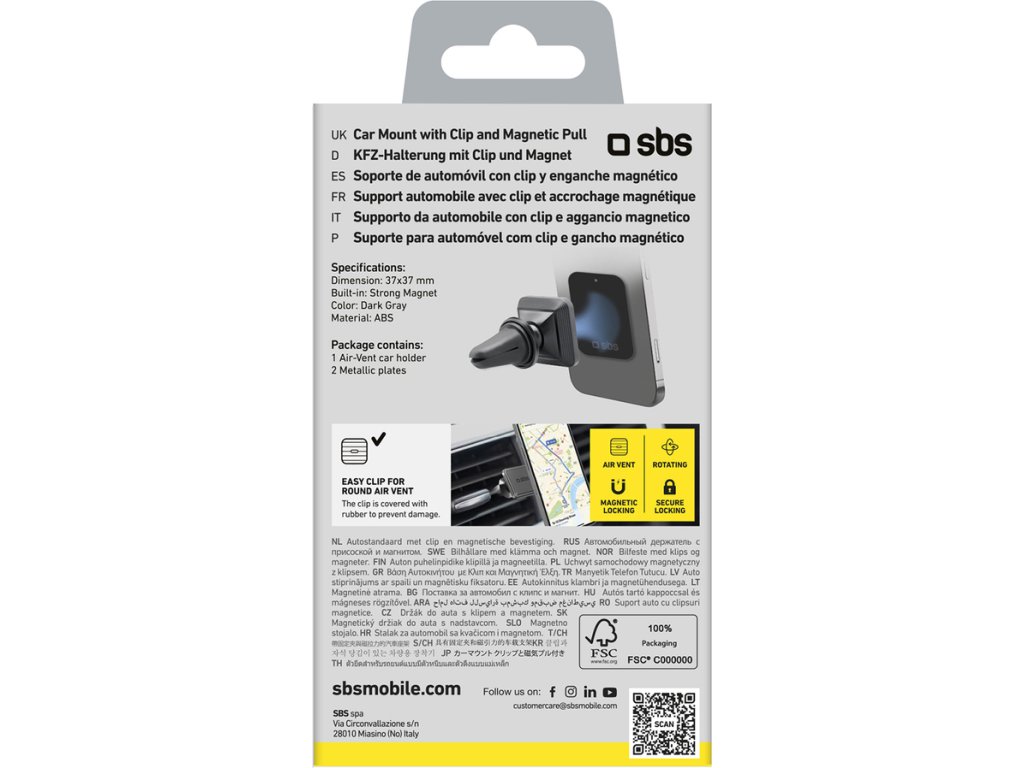 Magnetický držiak na smartfón SBS TESUPMAGLCLIP je perfektným spoločníkom na každú cestu autom. Vďaka kompaktným rozmerom a štýlovému dizajnu ponúka pohodlie a bezpečnosť používania. Magnetický povrch zaisťuje bezpečné uchytenie vášho smartfónu a možnosť nastavenia uhla sklonu umožňuje dokonalé prispôsobenie vašim potrebám. Držiak sa dá jednoducho namontovať na vetrací otvor, vďaka čomu je mimoriadne praktický a diskrétny. Súčasťou balenia sú kovové platničky, ktoré umožňujú rýchle pripevnenie zariadenia. Ideálne na navigáciu, handsfree hovory alebo ovládanie multimédií – vyberte si držiak SBS a cestujte bez kompromisov!