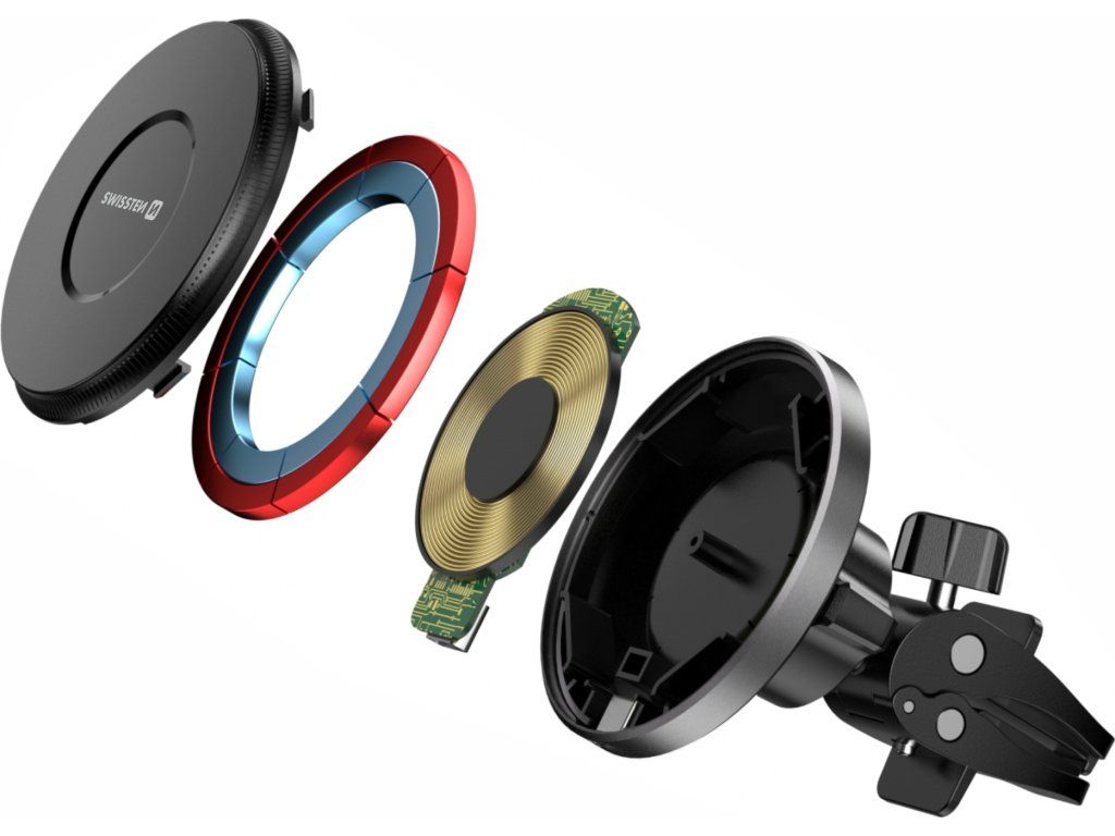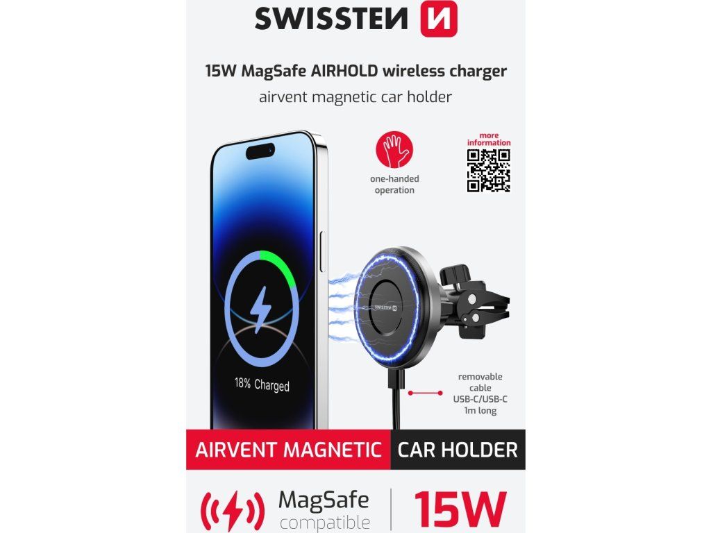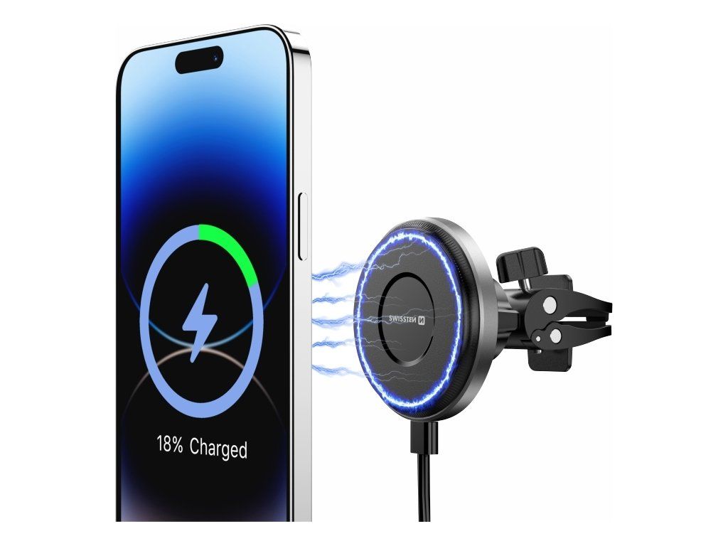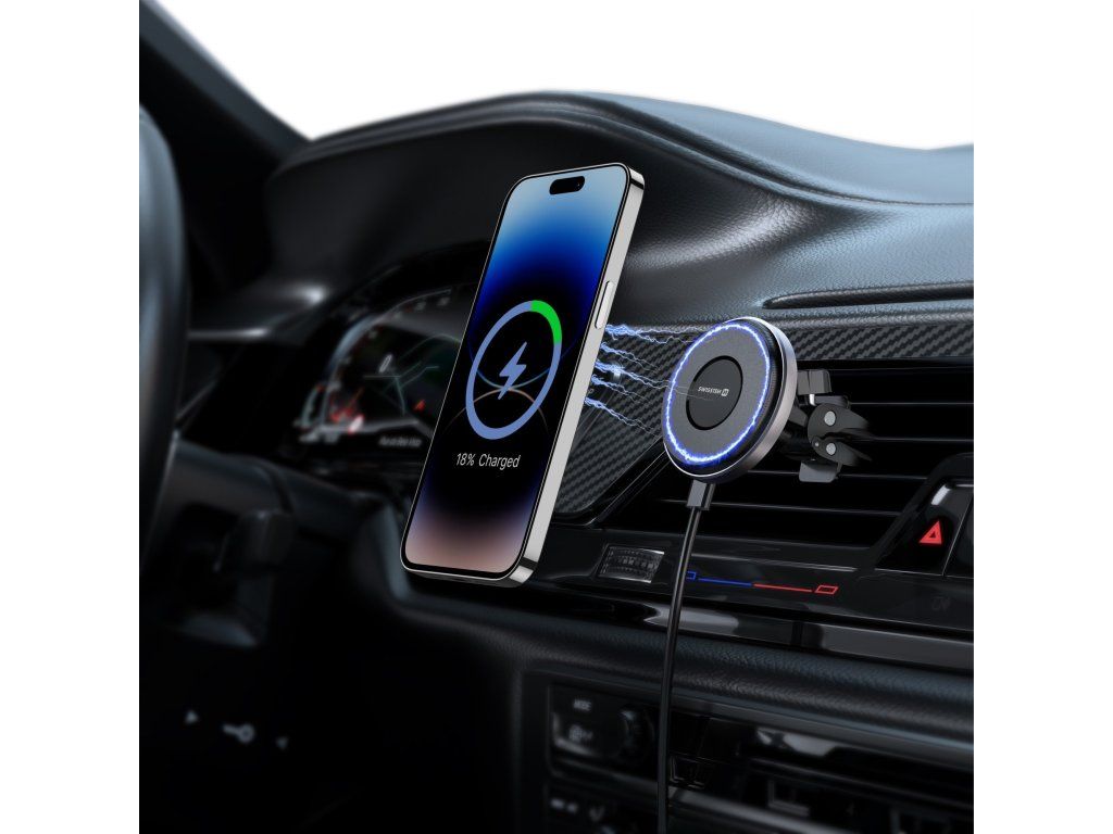 SWISSTEN MAGNETICKÝ DRŽIAK DO VENTILÁCIE AUTA AIRHOLD S BEZDRÔTOVÝM NABÍJANÍM 15W / 7,5W (kompatibilný s MagSafe)