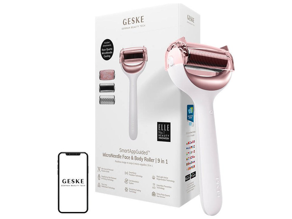 Užite si profesionálnu starostlivosť o pleť v pohodlí domova a zabudnite na drahé procedúry! Získajte svieži a zdravý vzhľad s 9v1 mezoterapeutickým valčekom na tvár a telo s ihlami! Je vybavený 3 hlavicami - ihlovou, chladiacou a kremennou - vyniká svojou všestrannosťou a je vhodný pre všetky typy pleti. Valec je zariadenie s inteligentnou aplikáciou SmartAppGuided, ktoré spolupracuje so špecializovanou aplikáciou GESKE German Beauty Tech. Pomôže vám rýchlo dosiahnuť vysnívané výsledky - na základe vzhľadu vašej pleti vám navrhne ošetrenia pleti prispôsobené vašim potrebám, aby sa zlepšil vzhľad vašej pleti a každý deň vám zaistil mladistvý lesk! Účinnosť potvrdená časopisom ELLE!
