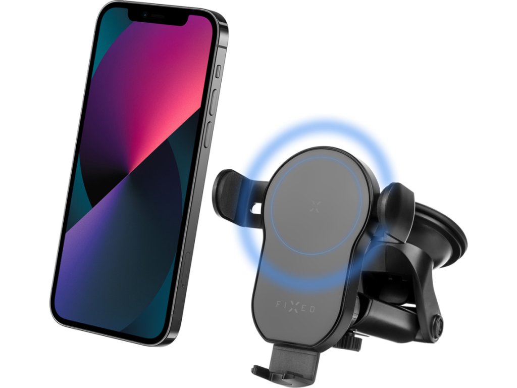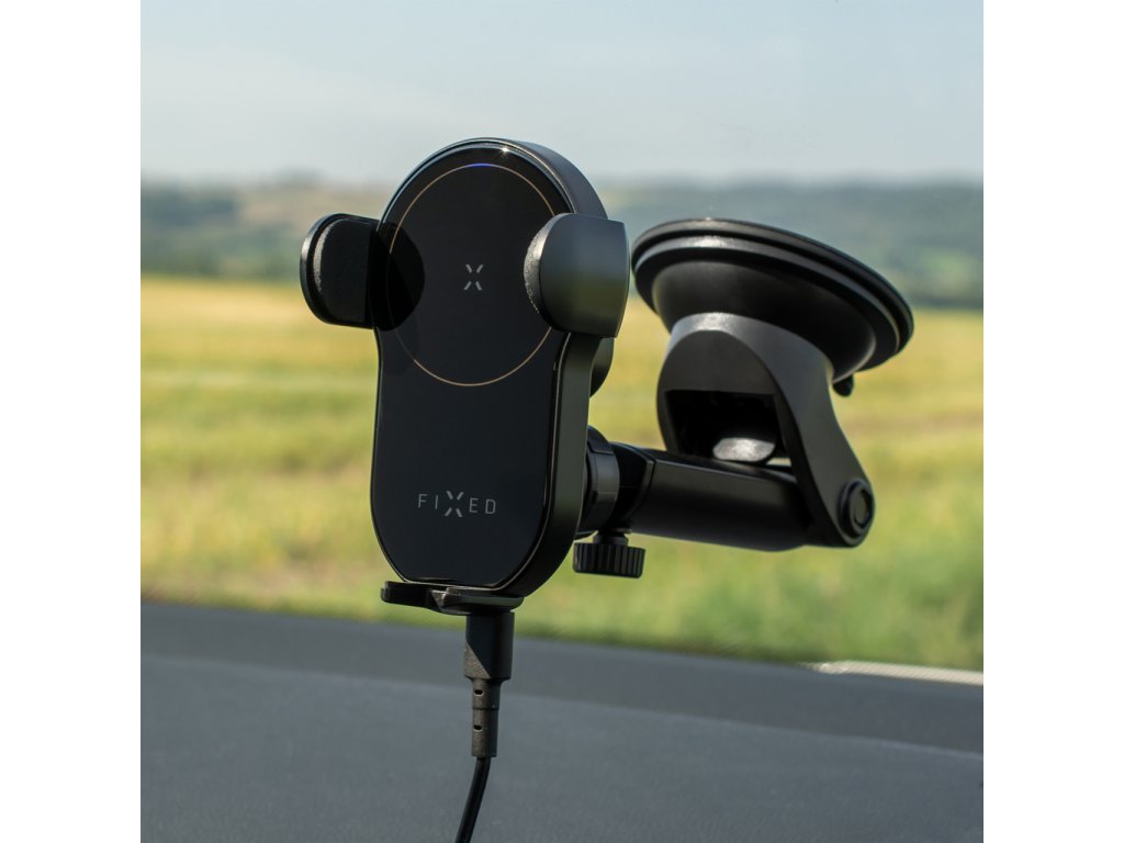 Automatický držiak do auta s rýchlym bezdrôtovým nabíjaním FIXED Matic XL na sklo alebo palubnú dosku, 15W, čierny