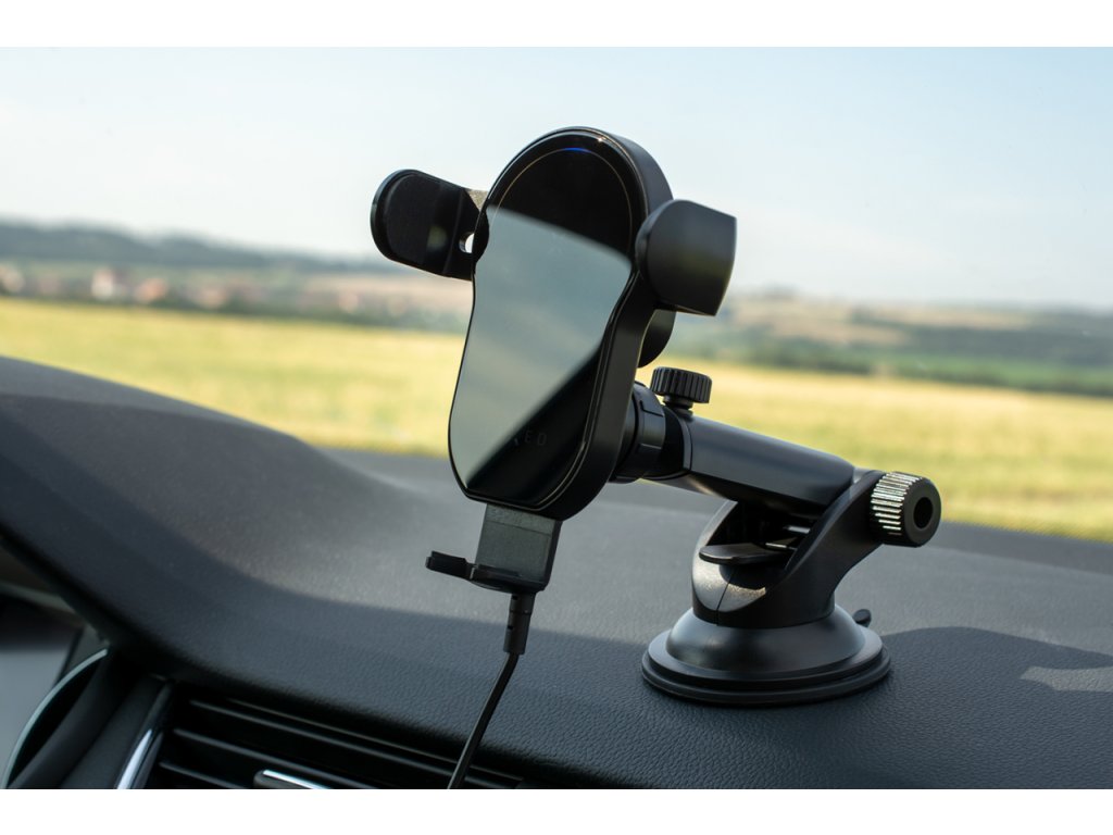 Vďaka špeciálnym kliešťam s automatickým zaistením je vloženie telefónu do držiaka jednoduchou záležitosťou, ktorú zvládnete pohodlne jednou rukou. Stačí priložiť váš telefón k základni držiaka, kliešte samy bezpečne zaistia vložený telefón a okamžite sa spustí bezdrôtové nabíjanie. Uchytenie telefónu je pevné a bez problémov vydrží všetky otrasy spôsobené jazdou. Na otvorenie držiaka stačí použiť dotykové tlačidlo na jeho vrchnej strane. Vďaka vnútornému kapacitátoru si držiak dokáže uchovať dostatok energie aj na otvorenie pri vypnutom motore alebo bez kľúča v zapaľovaní.
