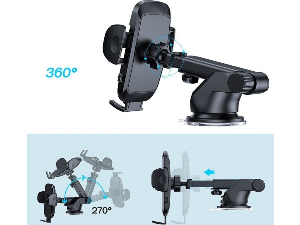 Postarajte sa o svoje pohodlie a bezpečnosť na cestách - vybavte sa praktickým držiakom na palubnú dosku, ktorý udrží váš telefón stabilný aj na hrboľatej ceste. Držiak sa ľahko inštaluje a praktická svorka vám umožní smartfón ľahko odložiť a sňať. Veľkou výhodou je voľná manévrovateľnosť v rozsahu 360 °, ktorá umožňuje usporiadať telefón vo zvislej aj vodorovnej polohe. Držiak JR-ZS259 je kompatibilný s telefónmi s uhlopriečkou od 4,7" do 6,7".