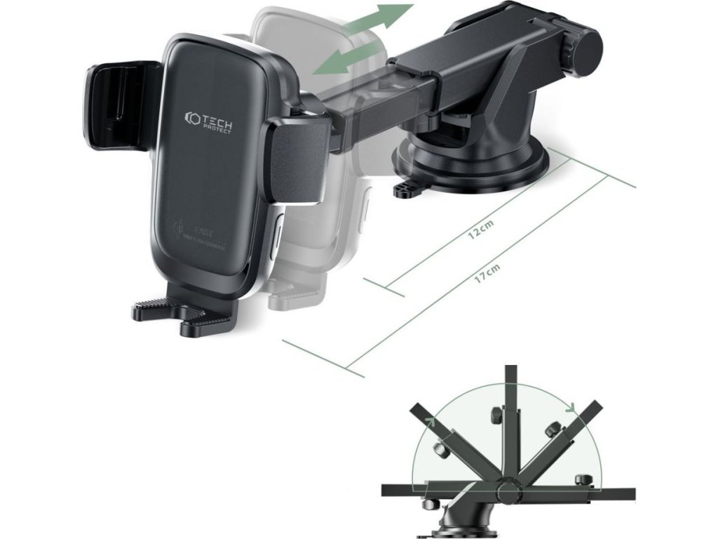 Tech-Proctect X05 je držiak do auta s funkciou bezdrôtového nabíjania s výkonom až 15W. Držiak na palubnej doske je vybavený pevným dĺžkovo nastaviteľným ramenom, ktoré v kombinácii s otočnou hlavicou dáva možnosť dokonalého uchytenia a vynikajúci komfort používania.