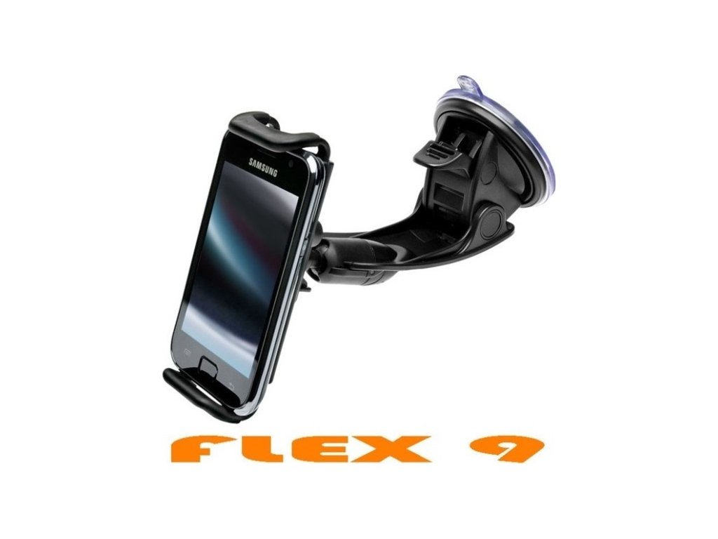 Univerzálny flexibilný držiak Celly FLEX9 pre mobilné telefóny, vybrané typy GPS navigácií a predovšetkým stále obľúbenejšie tablety. Vďaka svojej jednoduchej konštrukcii uchytenia je vhodný pre široké spektrum prístrojov s vyššími fyzickými rozmermi. Držiaky polstrovanej vaničky pevne držia prístroj zafixovaný, je možné tiež ním otáčať v uhle 360 °. Vanička je na skle zaistená pomocou výškovo nastaviteľného držiaka a uchytená na otočnom kĺbe pre maximálnu mieru nastavenia uhla pohľadu z miesta vodiča. Nastaviteľná šírka držiaka umožňuje fixáciu tabletov o veľkosti displeja 7". Balené v predajnej krabičke CELLY vhodné na zavesenie na stojan.