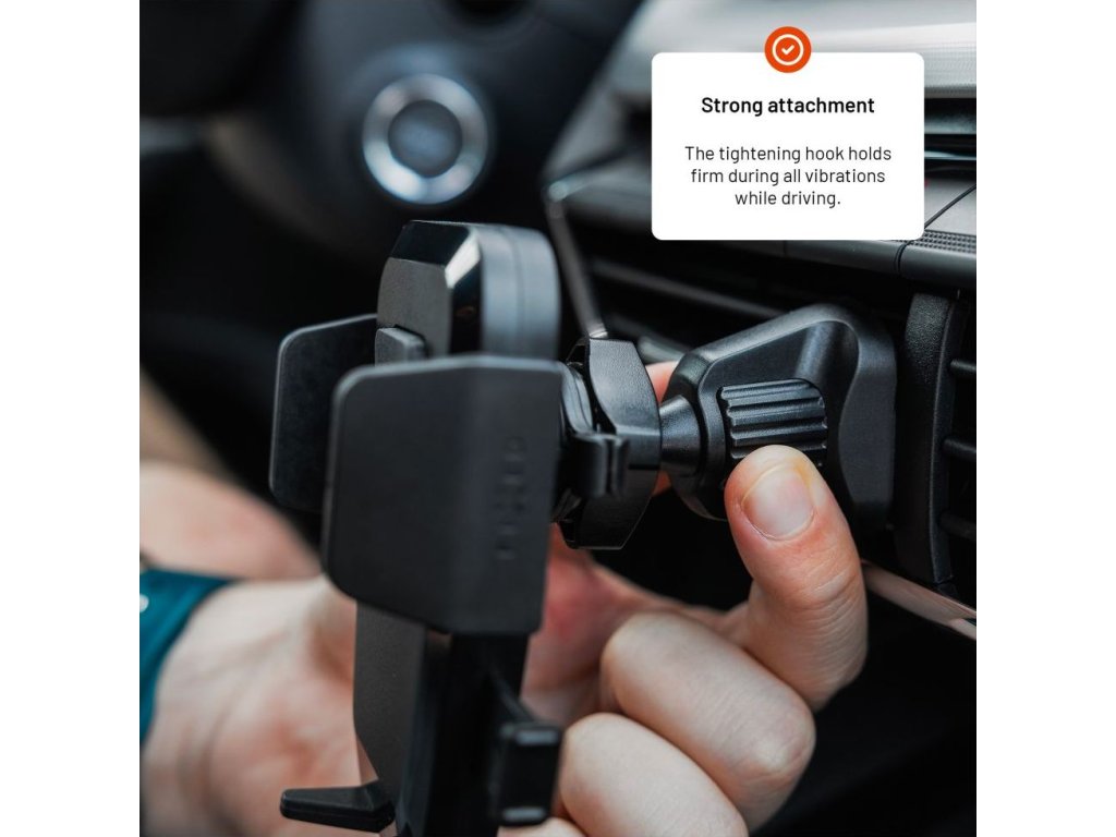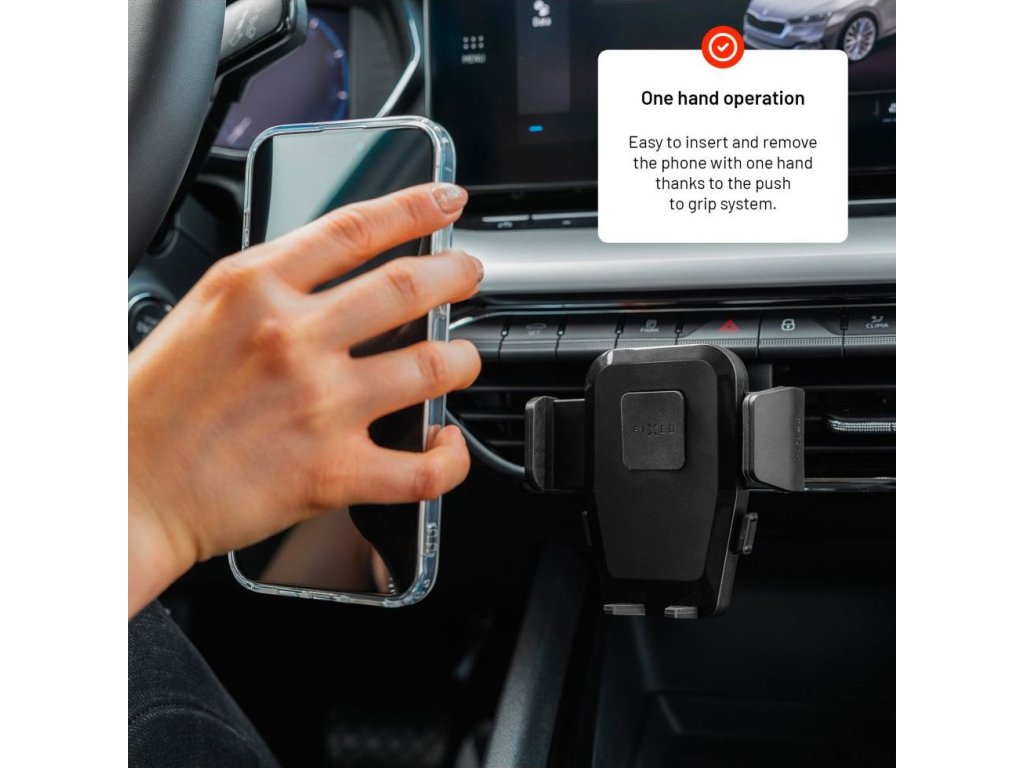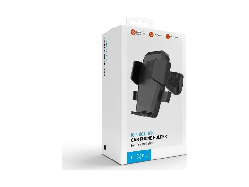 Univerzálny držiak do auta FIXED Iconiq Lock s rýchloupínacím systémom Push and grip ponúka bezpečné a jednoduché uchytenie telefónu, ktoré zvládnete jednou rukou. Držiak je kompletne vyvíjaný v Českej republike a ponúka tichý a plynulý mechanizmus v kombinácii s minimalistickým funkčným designom. Telefón stačí ľahko pritlačiť na plochu držiaka a bočné kliešte sa automaticky prispôsobia veľkosti telefónu do šírky až 8,3 cm. Jediným stlačením sa telefón rovnako rýchlo uvoľní. Stabilita upevneného telefónu je zospodu zaistená skosenými opierkami, ktoré nebránia prístupu k nabíjaciemu konektoru. Telo držiaka je kombináciou tvrdeného plastu a ochranných silikónových prvkov, ktoré tvoria jeden celok. Držiak pripevníte za lamelu ventilačnej mriežky auta pomocou nastaviteľného háčika, ktorý vďaka uťahovaciemu mechanizmu stabilne drží aj pri väčších otrasoch jazdy. Pomocou otočného kĺbu je možné upraviť ideálny pozorovací uhol, zatiaľ čo odnímateľné úchyty na zadnej strane držiaka uľahčujú organizáciu káblov. S držiakom FIXED Iconiq Lock si užite každú jazdu bez starostí.