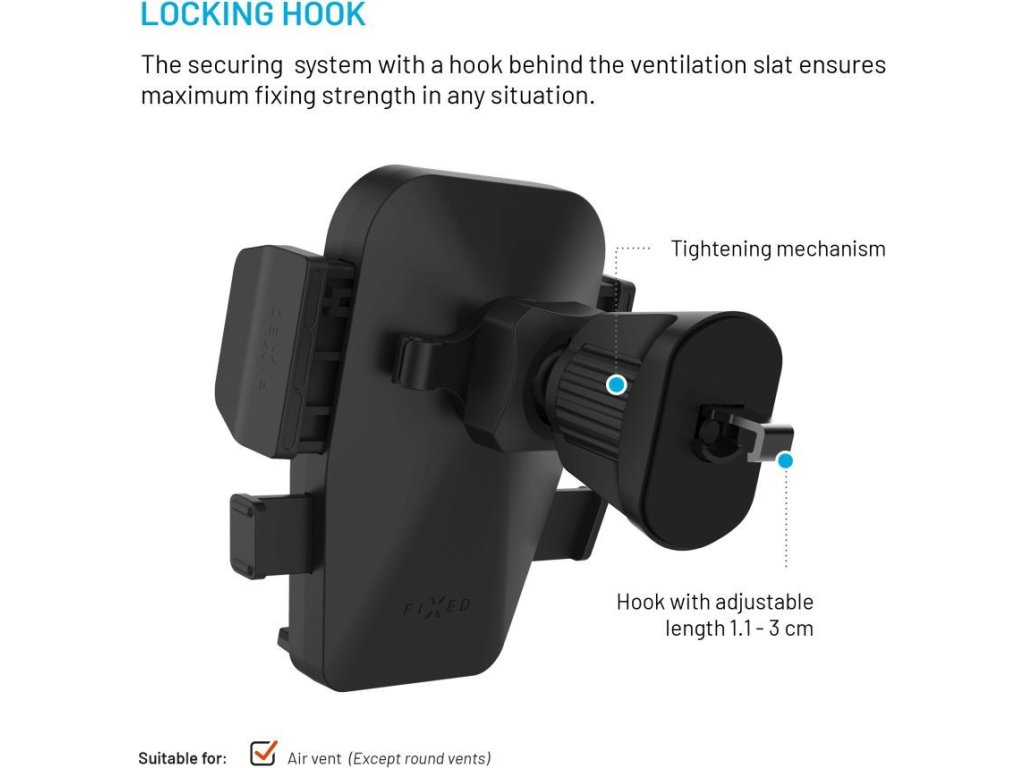 - uťahovací háčik do ventilácie nastaviteľný o 1,1 cm - 3 cm