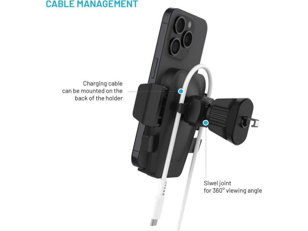 - odnímateľné úchyty pre nabíjací kábel na zadnej strane držiaka