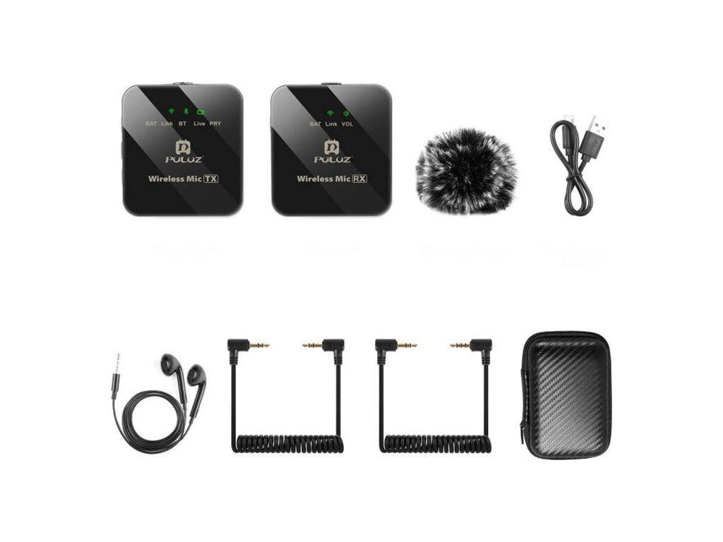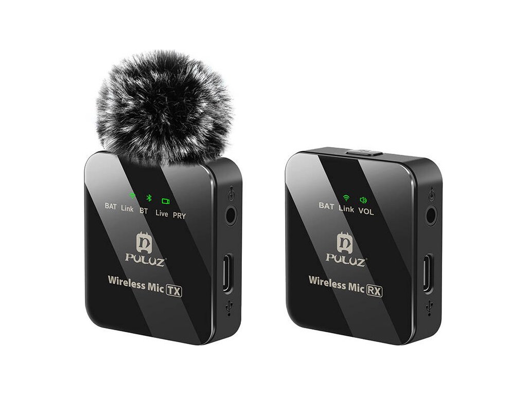 PULUZ 1 TX + 1 RX Bezdrôtový klopový mikrofón