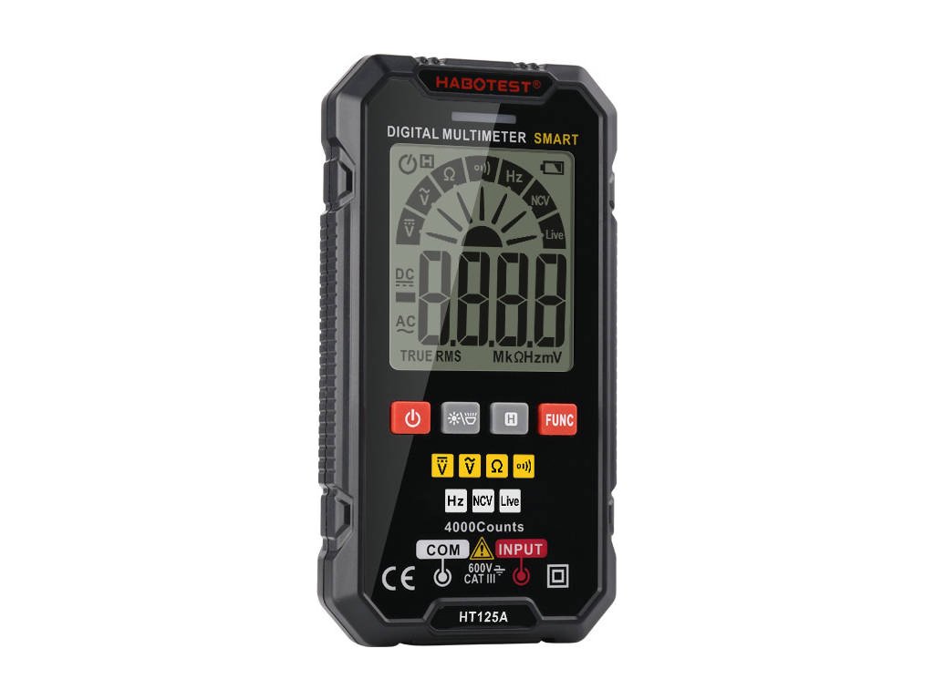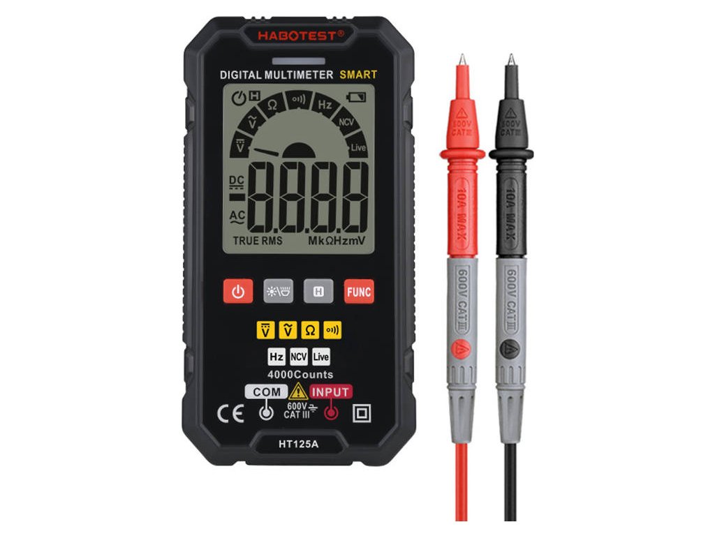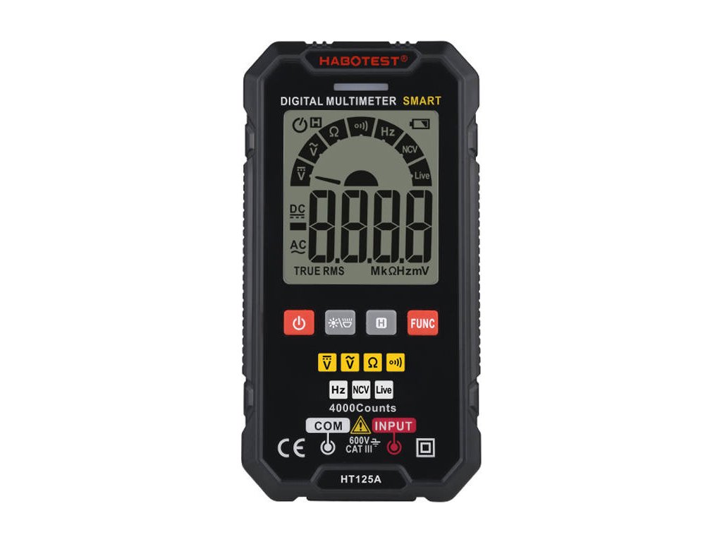 Digitálny univerzálny multimeter Habotest HT125A je šikovný prístroj, ktorý prekvapí rozsiahlosťou svojich možností. Umožňuje okrem iného merať s vysokou presnosťou striedavé a jednosmerné napätie, odpor, spojitosť alebo frekvenciu. Okrem toho ponúka funkciu Live Test, umožňuje testovanie diód, bezkontaktnú detekciu napätia (NCV) a mnoho ďalšieho. Dôležité je, že multimeter disponuje praktickými tlačidlami, pomocou ktorých môžete efektívne zvoliť funkciu.