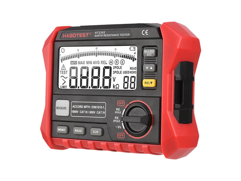 Digitálny merač izolačného odporu je špecializovaný prístroj, ktorý sa bude hodiť v mnohých situáciách a otestuje zemný odpor silových a rozvodných káblov alebo rôznych typov elektrických zariadení. Rozsah merania zemného odporu je od 0Ω do 4,00kΩ. Poskytuje efektívnu prevádzku prostredníctvom dvojpólového alebo trojpólového režimu. Navyše má veľký a prehľadný LCD displej, ktorý umožňuje efektívne čítanie získaných informácií.