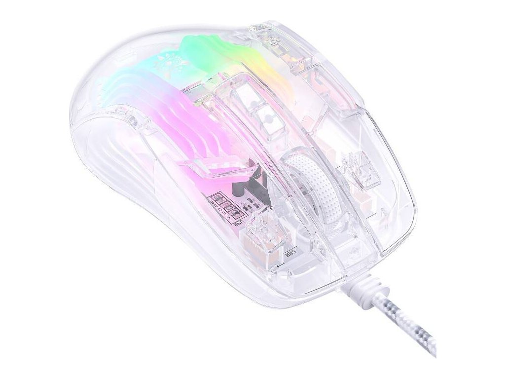Myš sa vyznačuje farebným RGB podsvietením, ktoré v kombinácii s priehľadným krytom poskytuje fantastický vizuálny efekt. Môžete si tiež vybrať zo 16,8 miliónov odtieňov a upraviť si jeho vzhľad podľa svojich predstáv. To však nie je všetko - je tu možnosť synchronizácie svetla s hudbou, vďaka čomu si môžete užiť ešte zaujímavejší výsledok a väčšie ponorenie.
