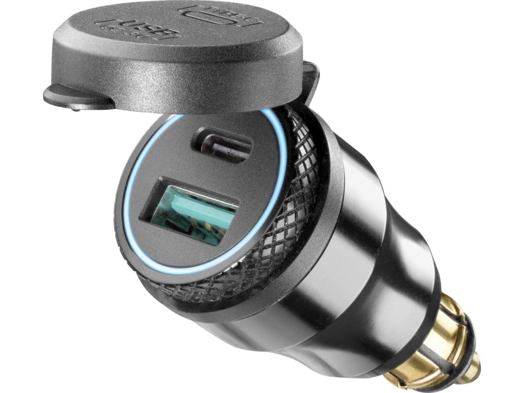 Adaptér Interphone pre motocykle vám umožní nabíjať vaše elektronické príslušenstvo aj mobilný telefón počas jazdy. K dispozícii má USB a USB-C port, pomocou ktorých môžete nabíjať až dve zariadenia súčasne. Adaptér je praktický, kompaktný a je vybavený ochranným krytom proti vniknutiu vody.