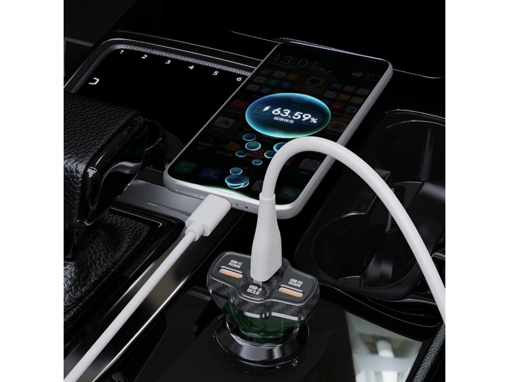 Elegantný čierny kryt nabíjačky Dudao R78 nielen dobre vyzerá, ale je aj odolný voči každodenným škrabancom, čo zaisťuje jej dlhotrvajúci a estetický vzhľad. Kompaktný dizajn znamená, že nabíjačka nezaberá veľa miesta a perfektne sa hodí do interiéru každého auta.