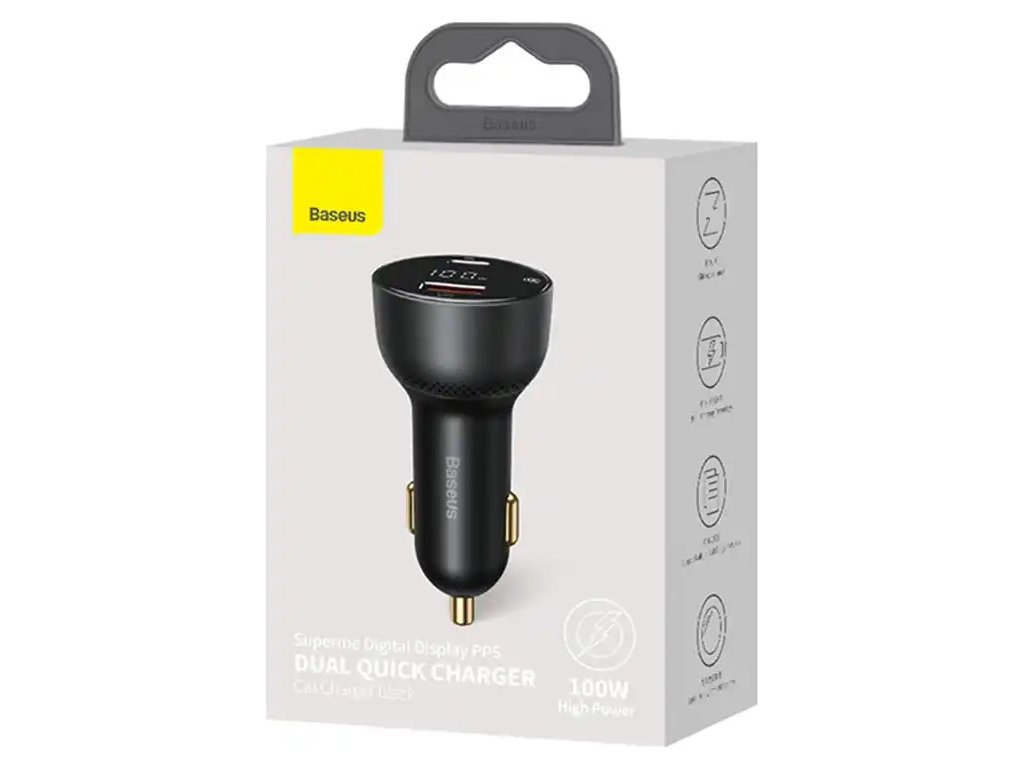 Nabíjačka do auta Baseus Superme, USB, USB-C, 100W (čierna)