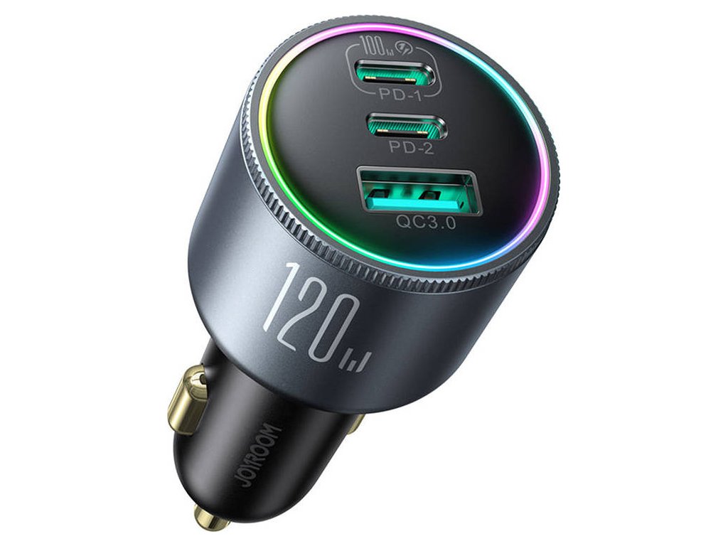 Je váš telefón blízko vybitia a vy máte pred sebou ešte mnoho hodín cesty? Nabíjačka do auta Joyroom JR-CCN07 prichádza na pomoc! Ponúka nabíjanie výkonom až 120 wattov a podporuje nabíjacie štandardy PD a QC3.0. Je vybavený 2 portami USB-C a portom USB-A, takže môžete bez problémov nabíjať 3 zariadenia súčasne. Súčasťou balenia je aj USB-C kábel.