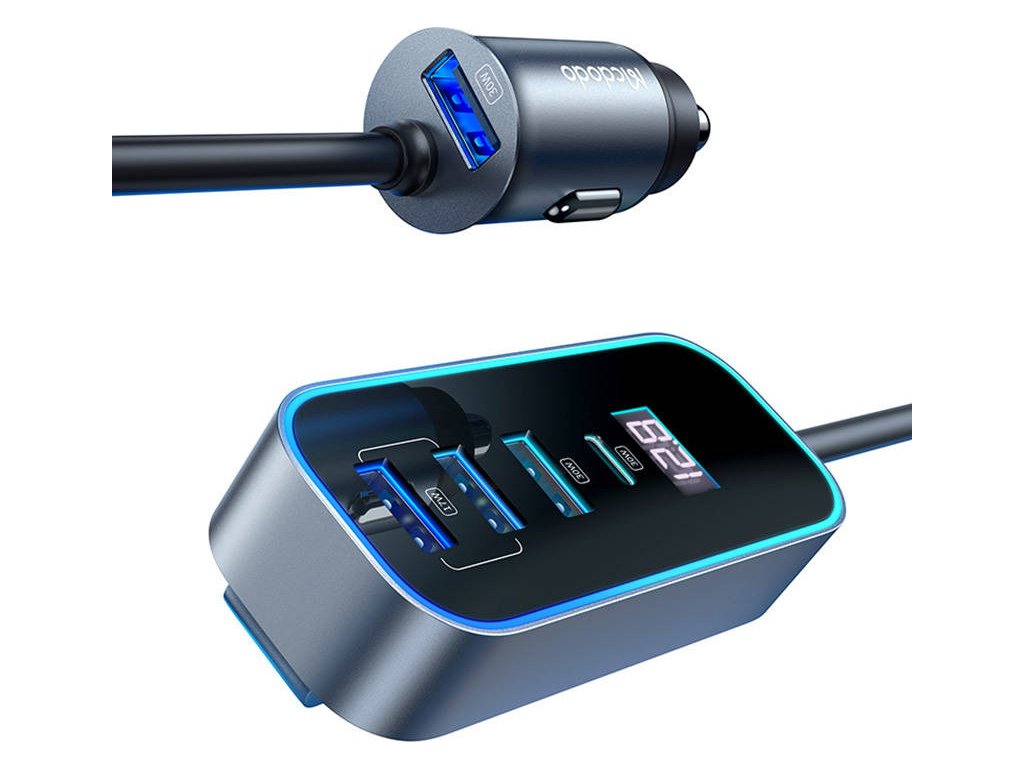 Hľadáte účinnú nabíjačku do auta, ktorá vám dobre poslúži pri rodinných výletoch alebo cestách s priateľmi? Mcdodo CC-1900 je skvelá voľba! Je vybavený 5 portami (4x USB-A, 1x USB-C), ktoré umožňujú pripojiť až 5 zariadení súčasne. Poskytuje celkový výstupný výkon až 107 W a podporuje rôzne štandardy rýchleho nabíjania. Vyniká tiež širokou kompatibilitou a dlhým 1,5-metrovým káblom, vďaka čomu ho môžu používať aj cestujúci na zadných sedadlách.