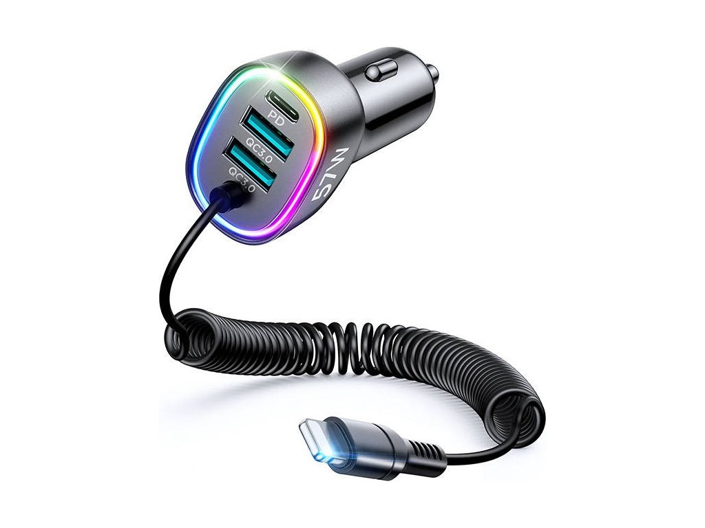 Môžete zabudnúť na večne zamotané káble! Nabíjačka do auta je vybavená vstavaným káblom Lightning. Vďaka špirálovému prevedeniu v ňom budete mať ľahko poriadok. Kábel sa navyše môže predĺžiť až na 1,6 metra. Od tejto chvíle budete mať kábel vždy po ruke.