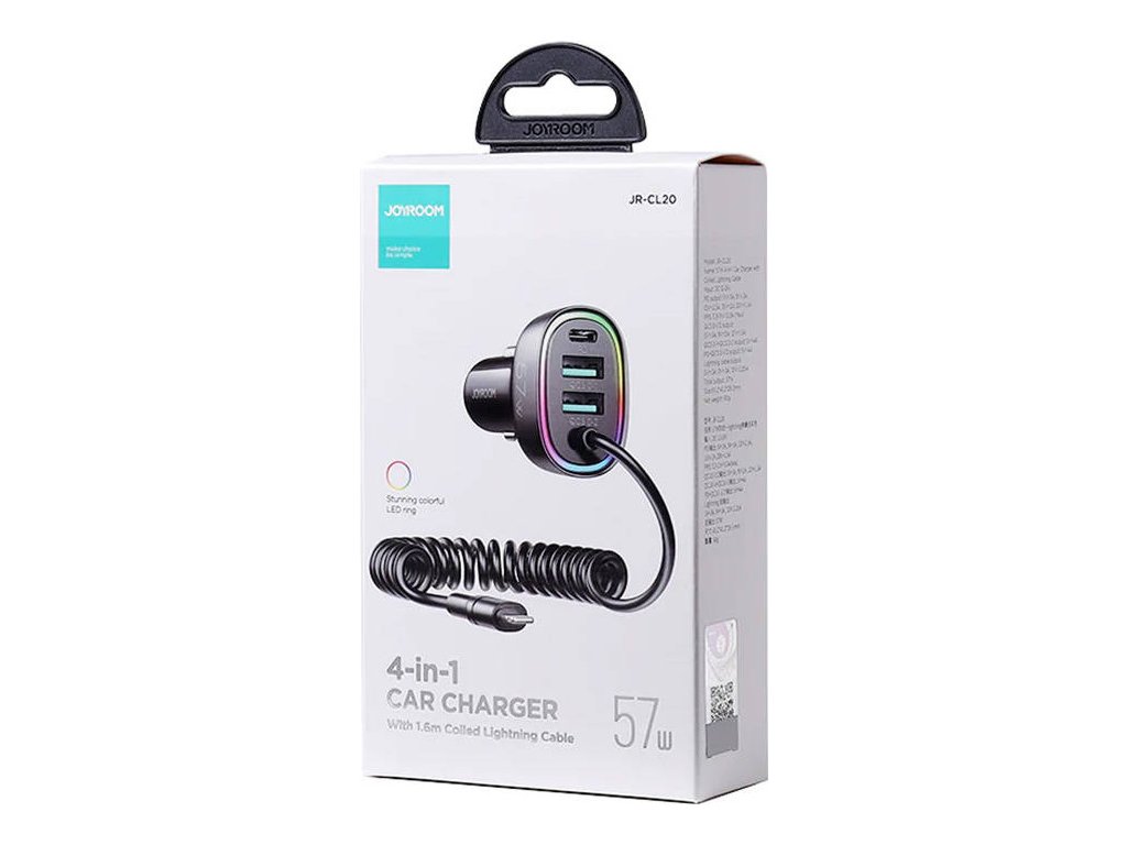 Rýchlonabíjačka do auta Joyroom 4 v 1 PD, QC3.0, AFC, FCP s Lightning káblom 1,6 m 57 W čierna (JR-CL20)