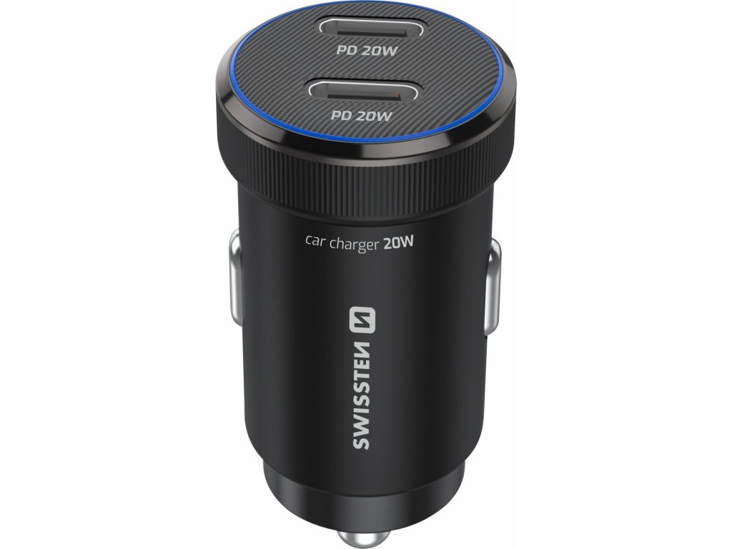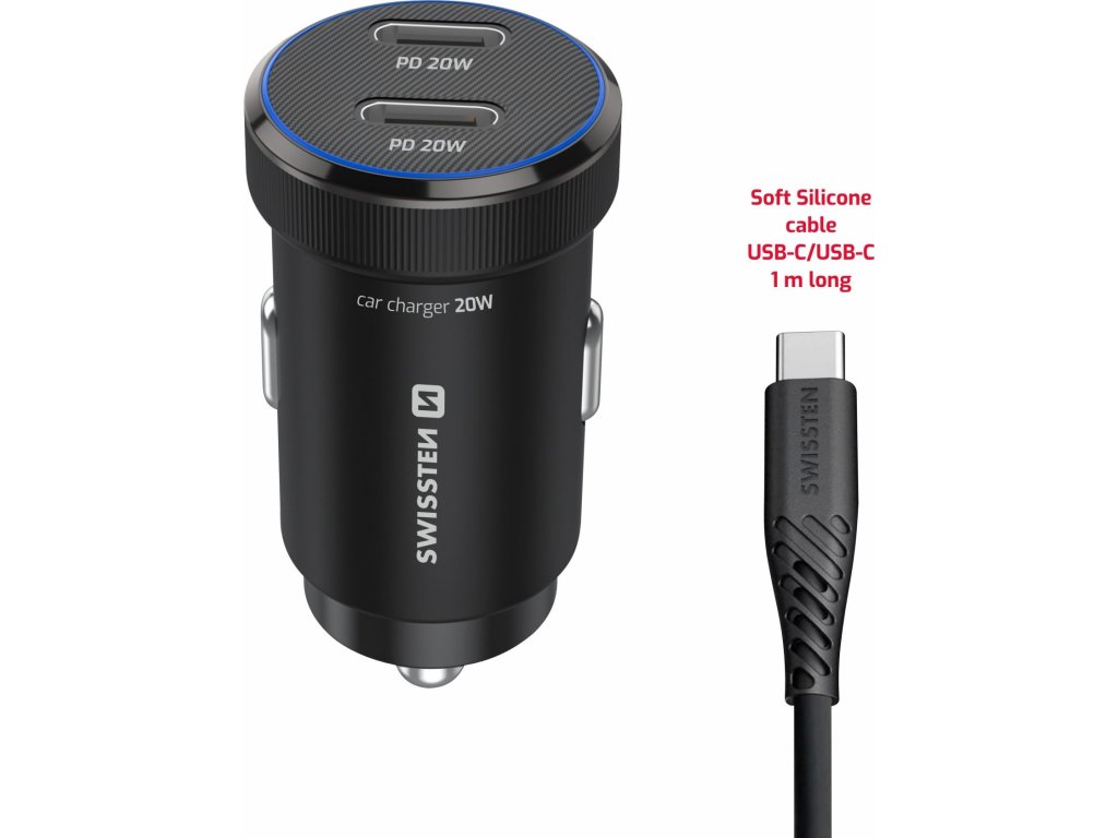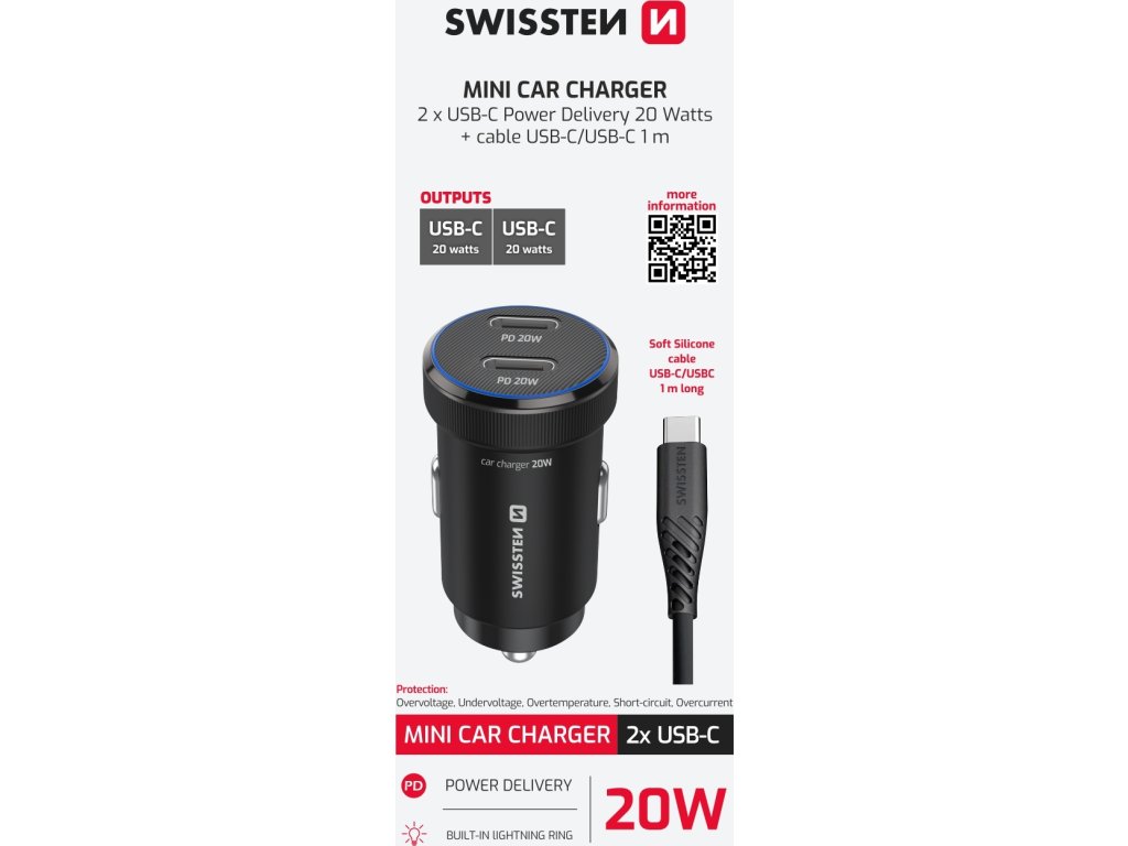 SWISSTEN CL ADAPTÉR 2x USB-C PD, 20W ČIERNY + KÁBEL USB-C / USB-C, 1 M