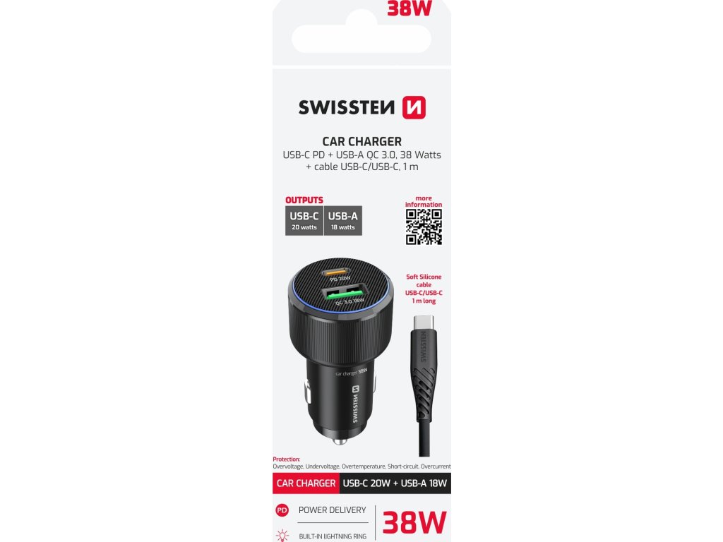 SWISSTEN CL ADAPTÉR USB-C PD + USB-A, 38W ČIERNY + KÁBEL USB-C / USB-C, 1 M